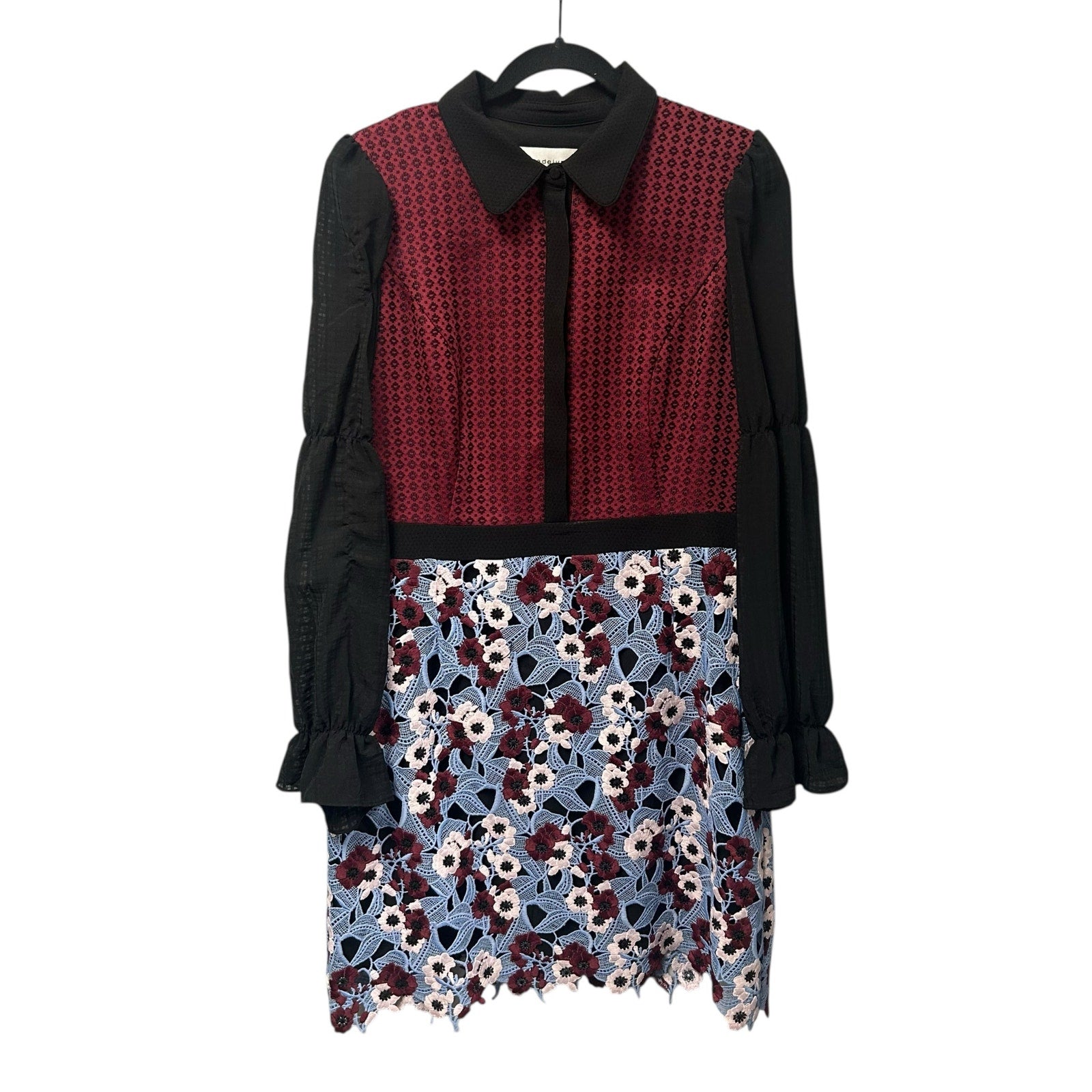 Adelyn Rae Burgundy White Blue Crochet Floral Long Sleeve Dress Womens Large
