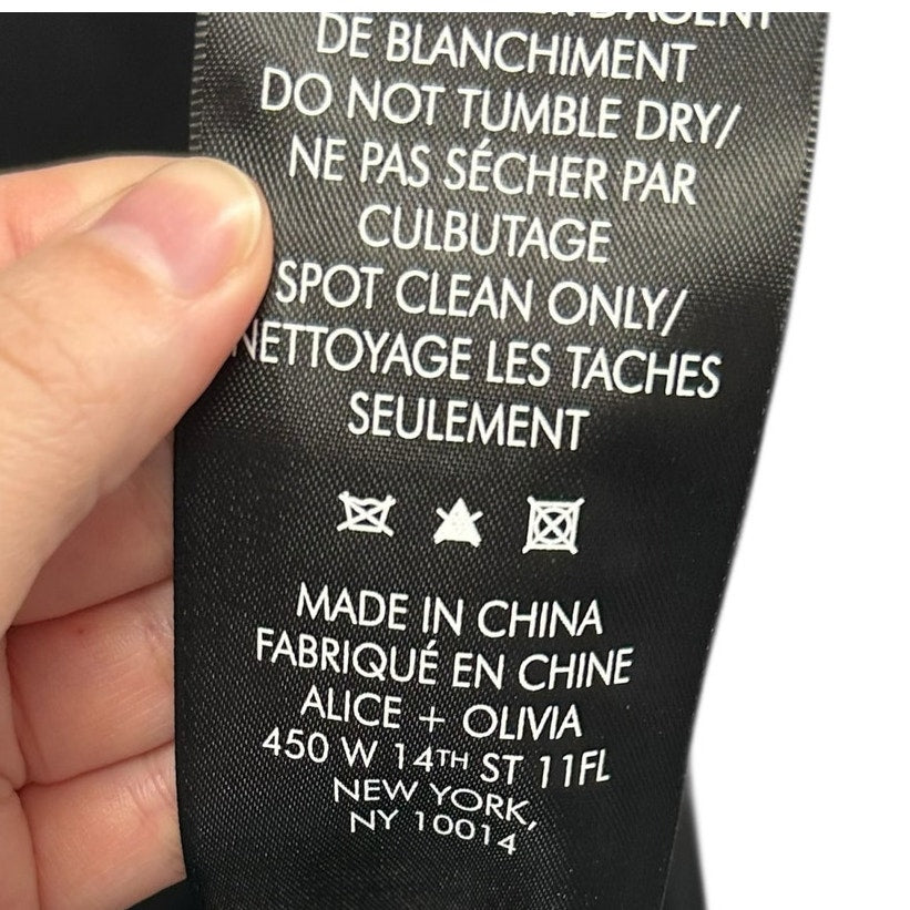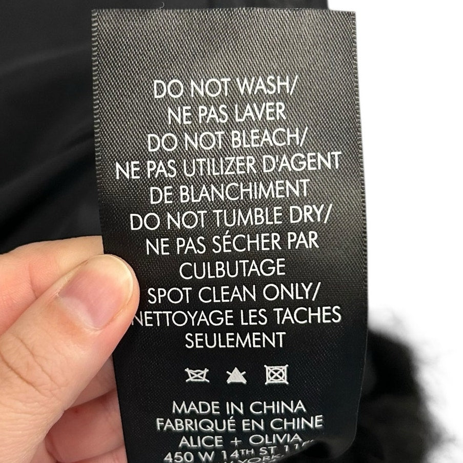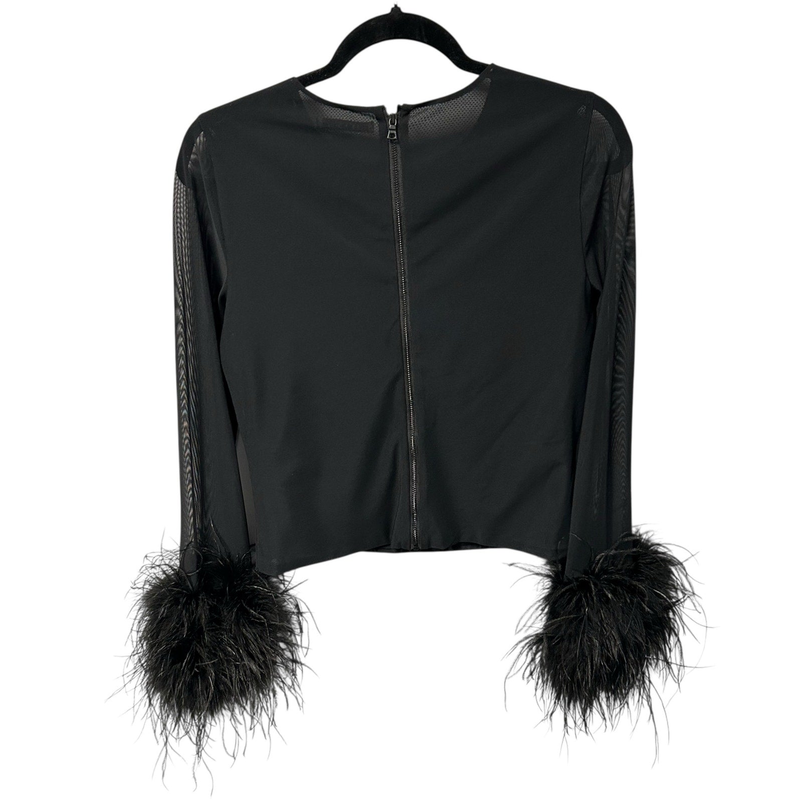 Alice + Olivia Black Delaina Feather Trim Cuff Mesh Long Sleeve Top Womens XL