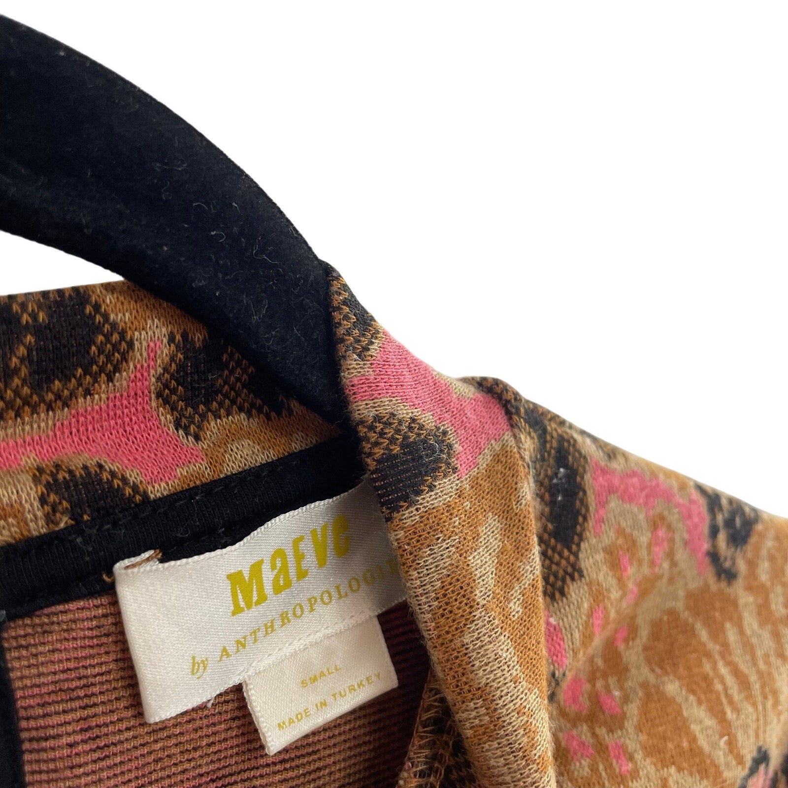 Anthropologie Maeve Mock Neck Jacquard Floral Knit Tan Pink Top Womens Small