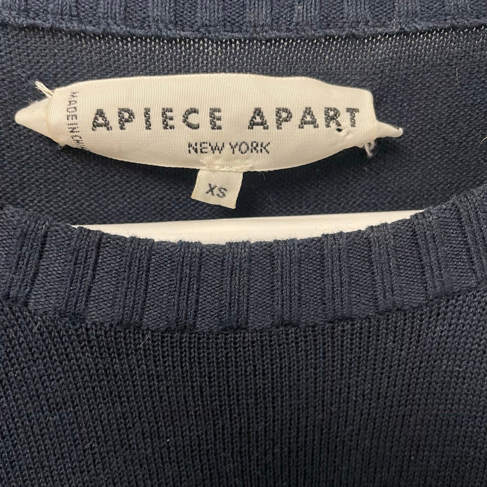 • Features: Pullover styling, Long sleeves, Crewneck, Navy, Ruffle accent across center, Ribbed knit on sleeves, hemline, and neckline, Apiece Apart Sweater