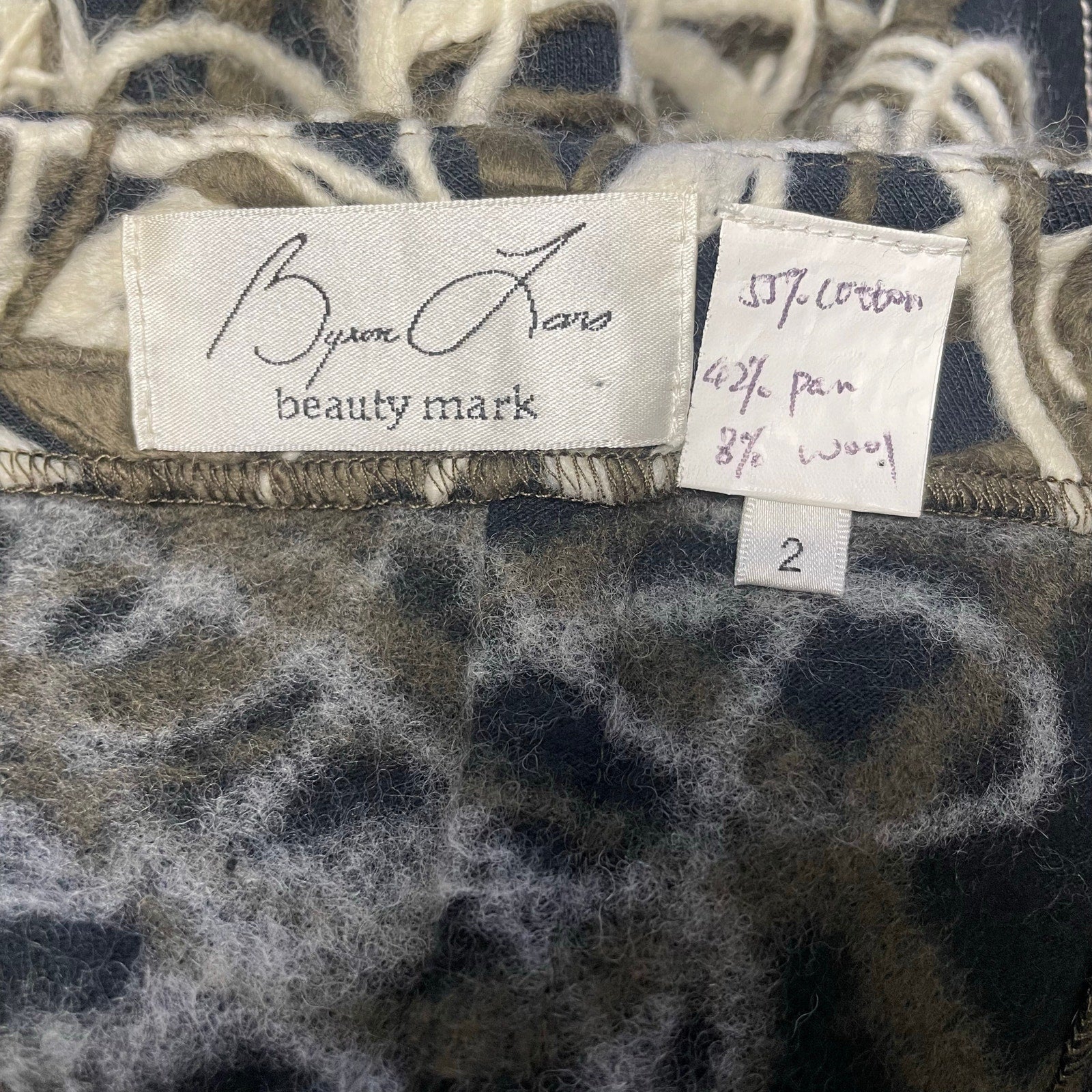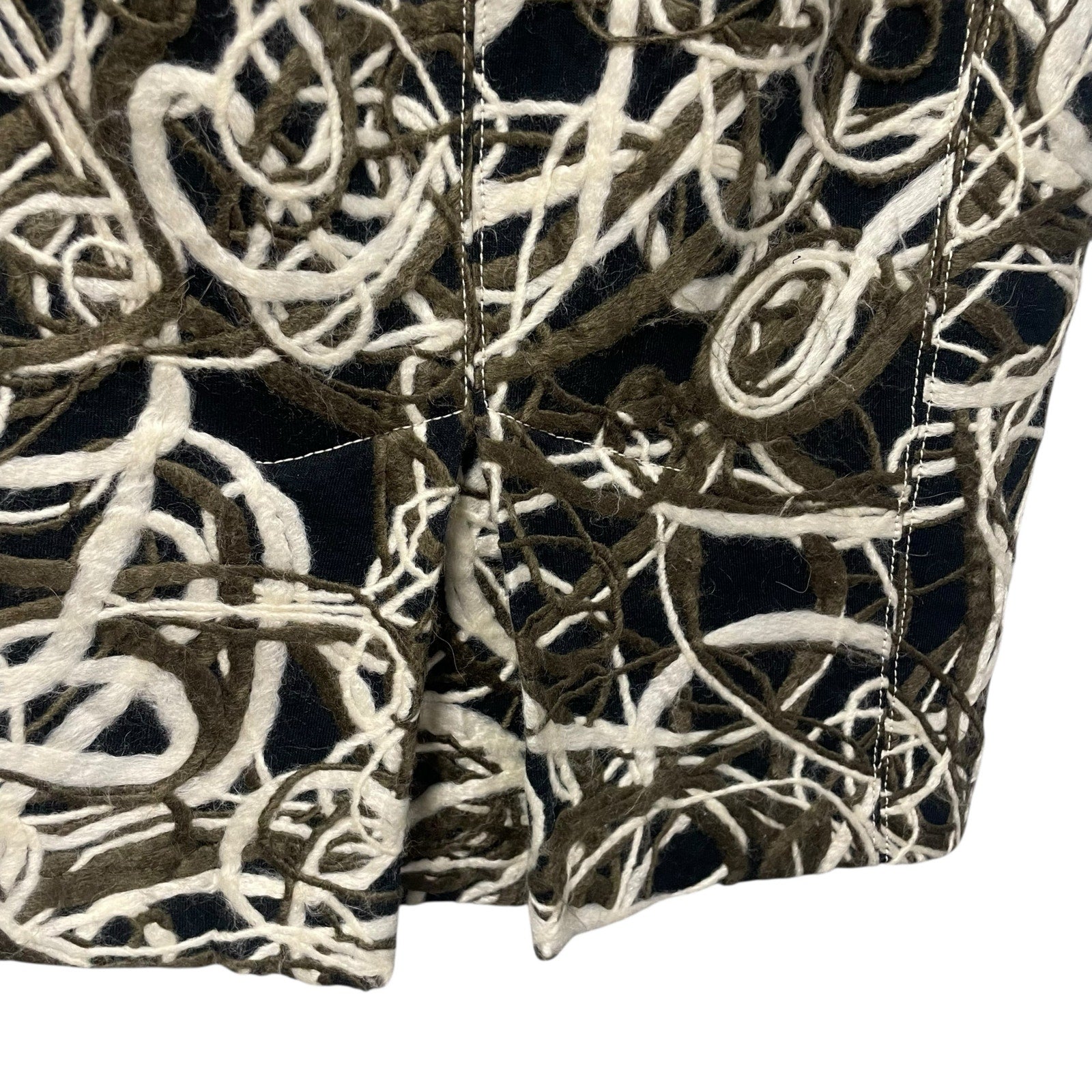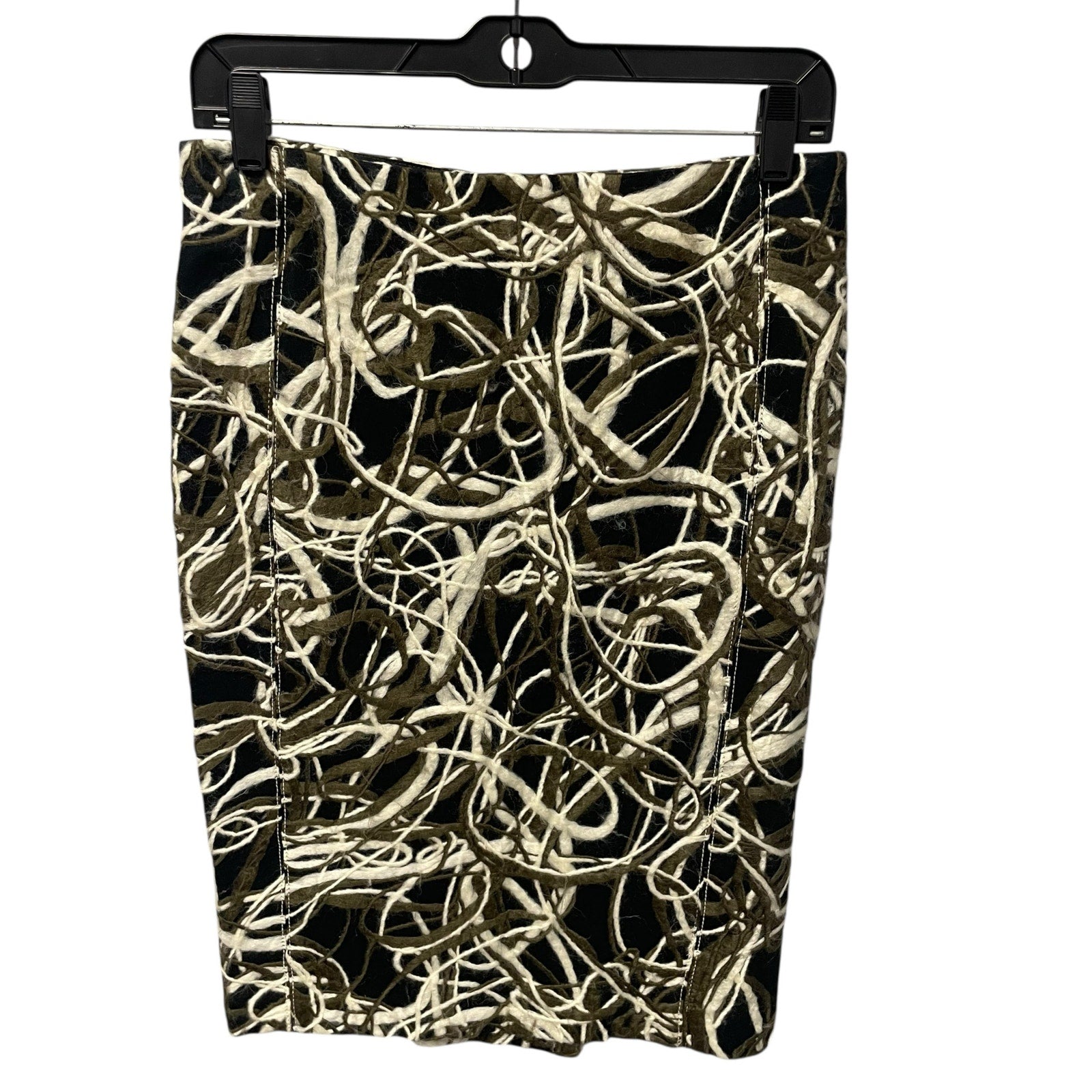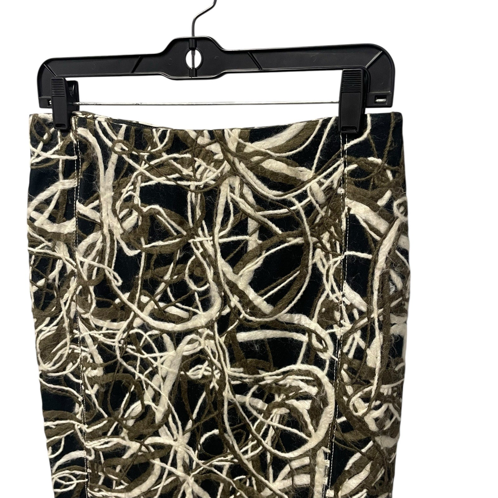 Byron Lars Black Green Cream Wool Blend Straight Fit Knee Skirt Womens Size 2