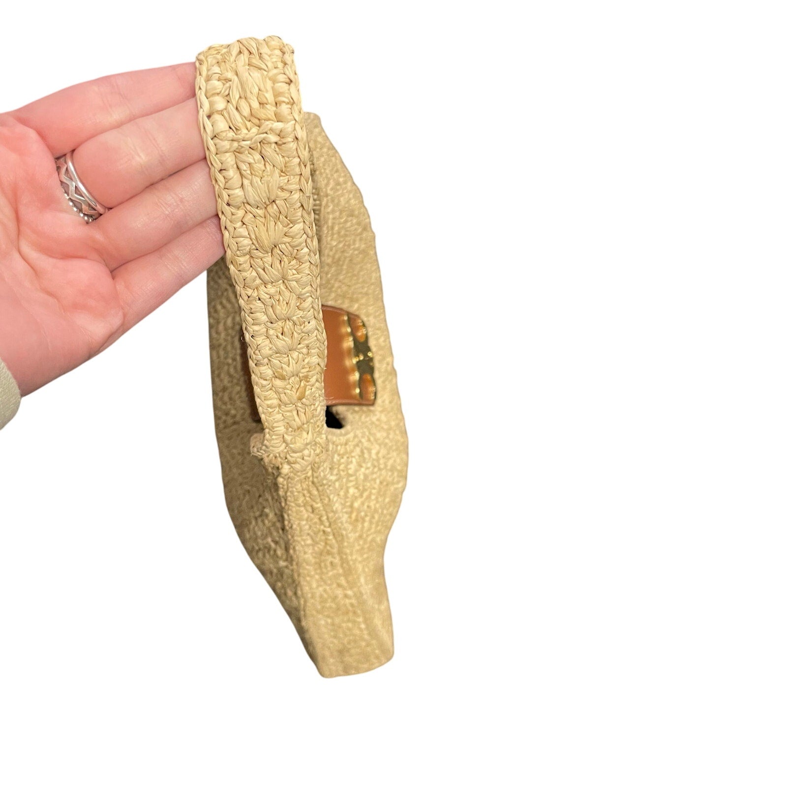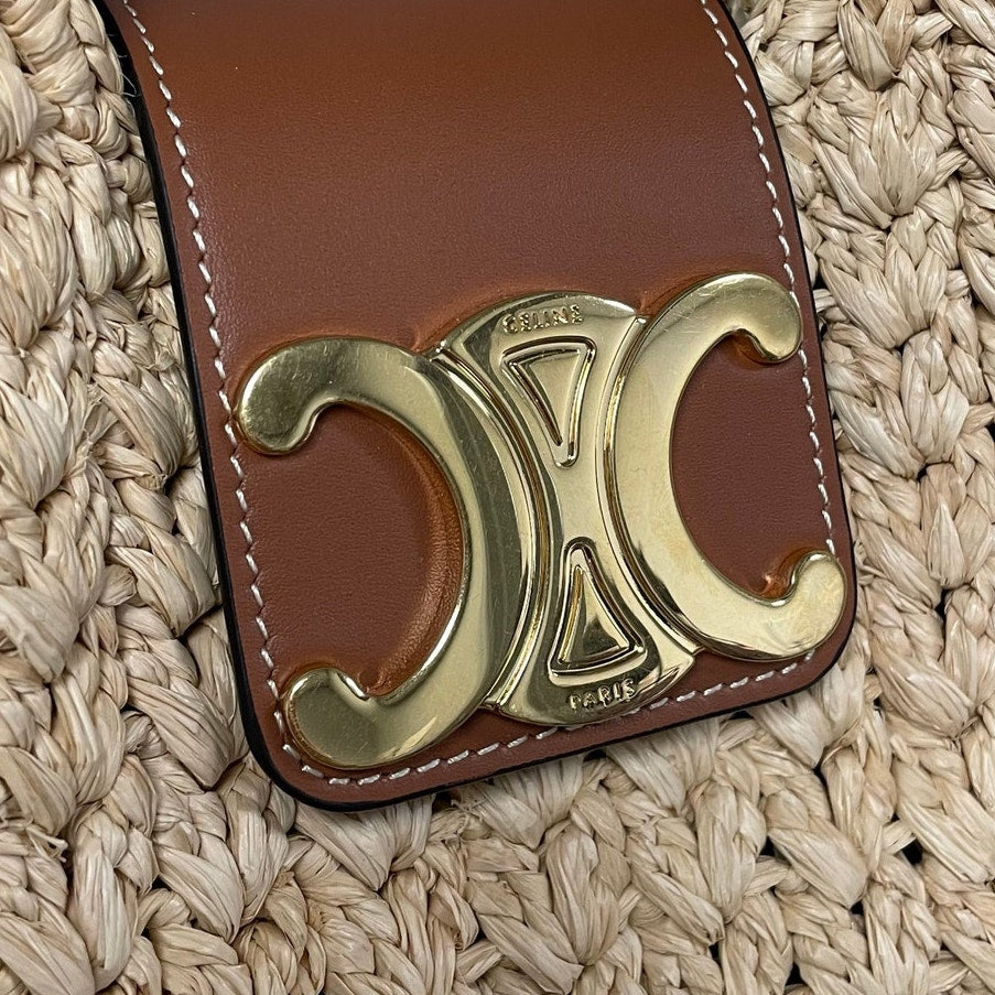 Celine Cabas Triangle Raffia and Calfskin Leather Tote Handbag in Natural / Tan