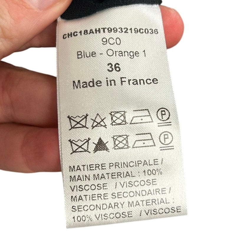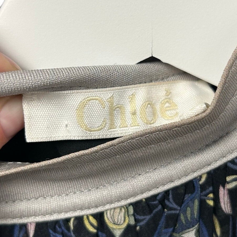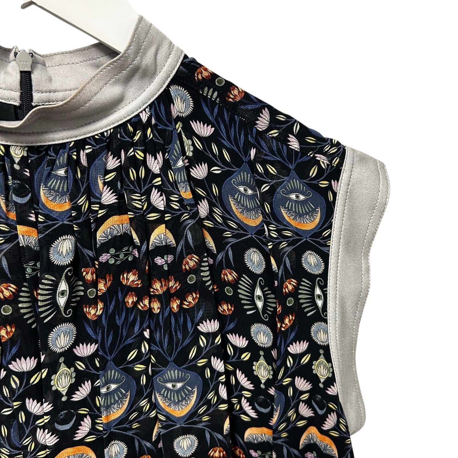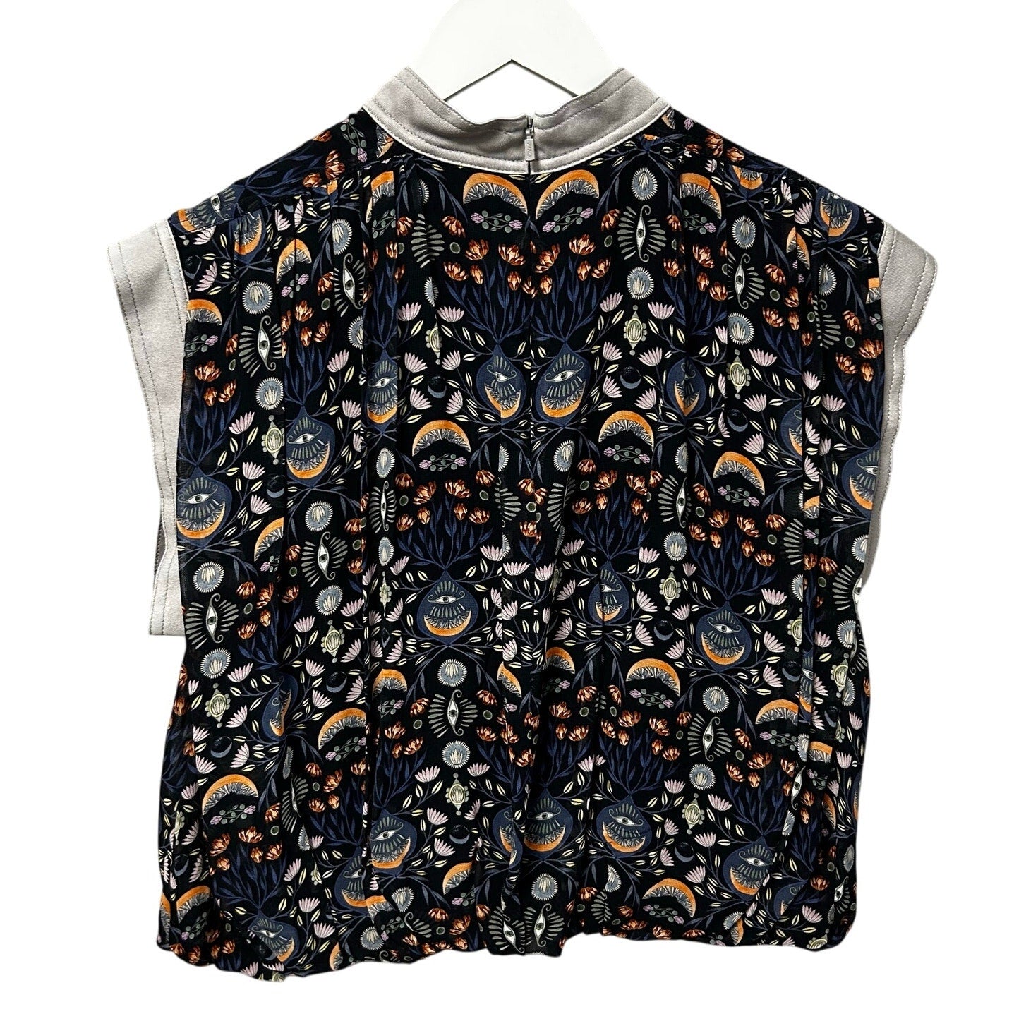 Chloe Blue Orange Evil Eye Lotus Print Pleated Bubble Top Womens 36 / US 4