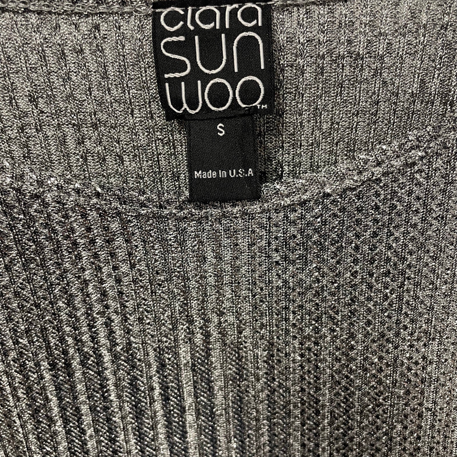 Clara Sun Woo Silver Metallic Knotted Front 3/4 Sleeve Top Womens Small