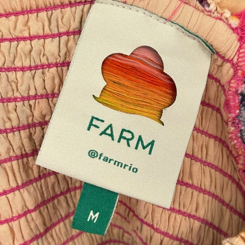 Farm Rio Lindeza Grafica Puff Sleeve Multi Smocked Mini Dress Womens Medium