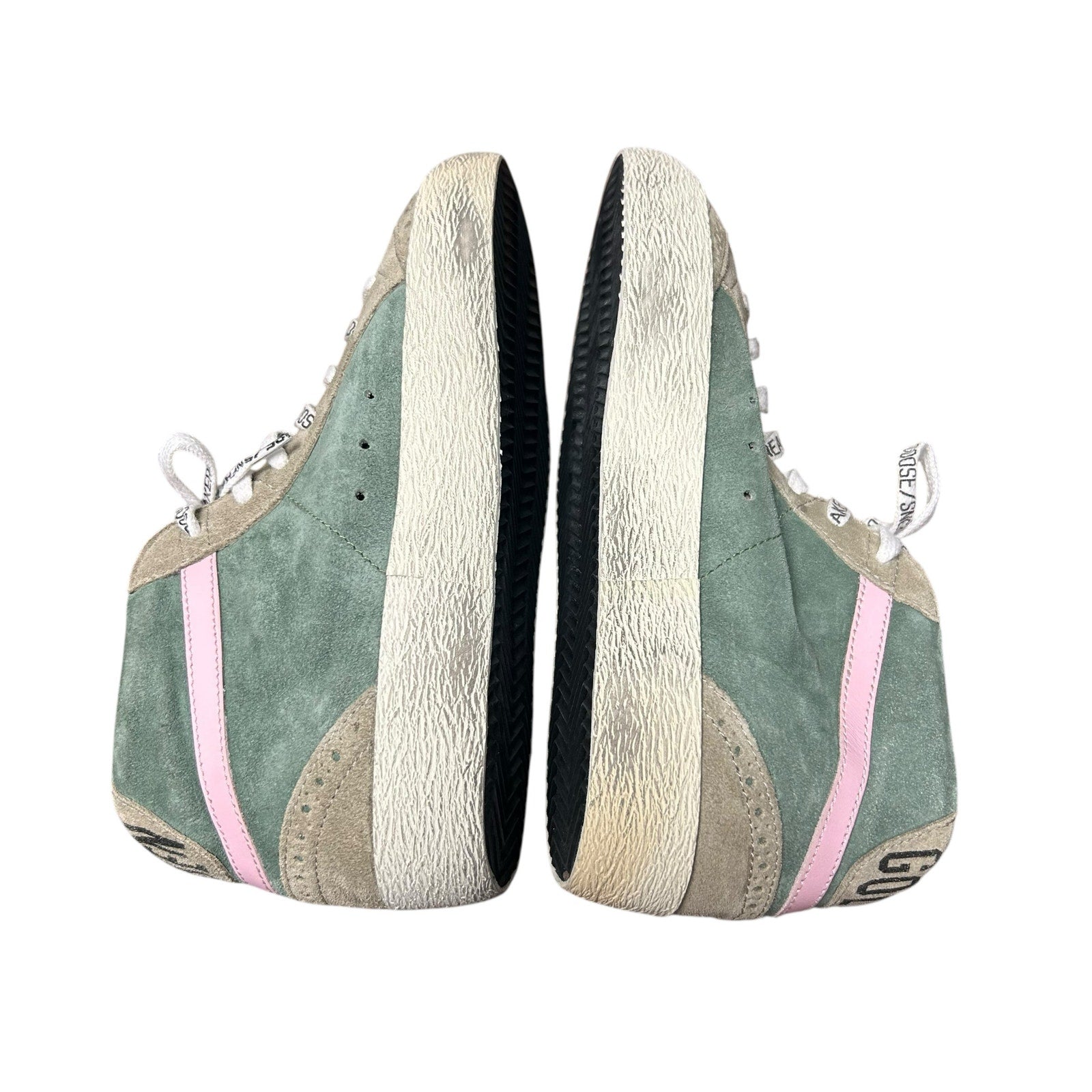 Golden Goose Mid Star Green Tan Suede Blue Star Lace Up Sneakers Womens 39 / 9