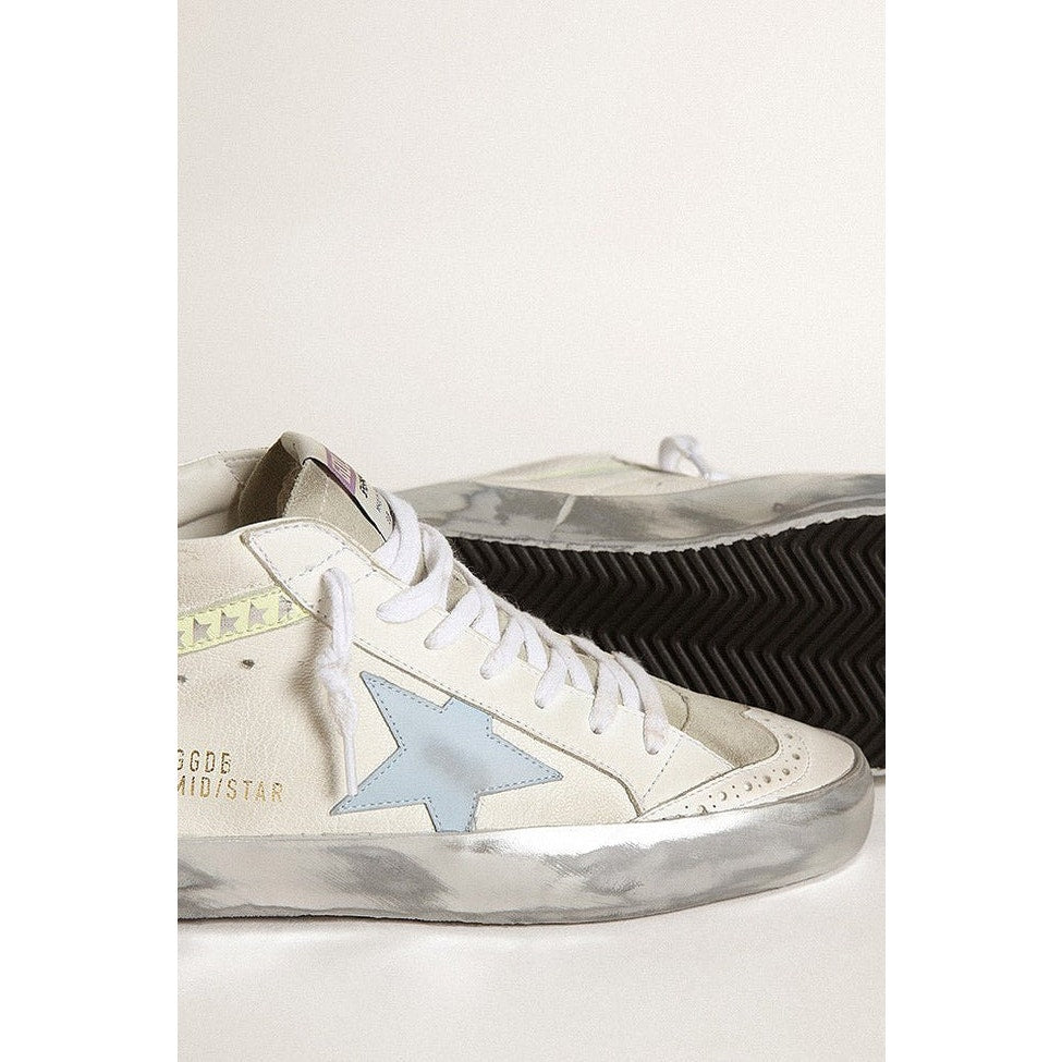 Golden Goose Mid Star Ice Blue Mixed Leather Lace Up Sneakers Womens 39 / US 9