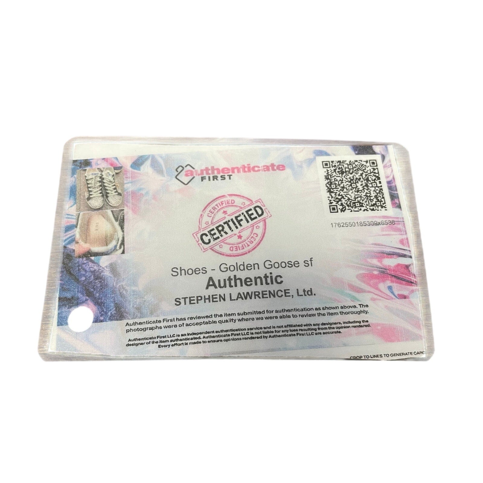 • Features: Silver sparkly glitter upper with animal print calf hair star on outers, Lace up, Low top, Superstar style sneaker by Golden Goose, Comes with card of authenticity