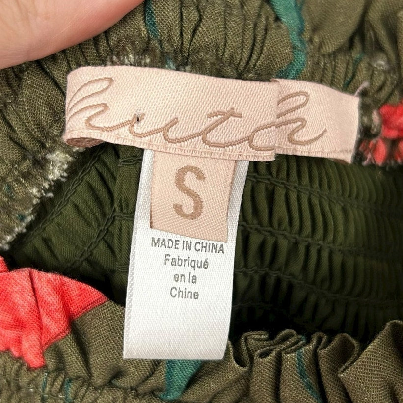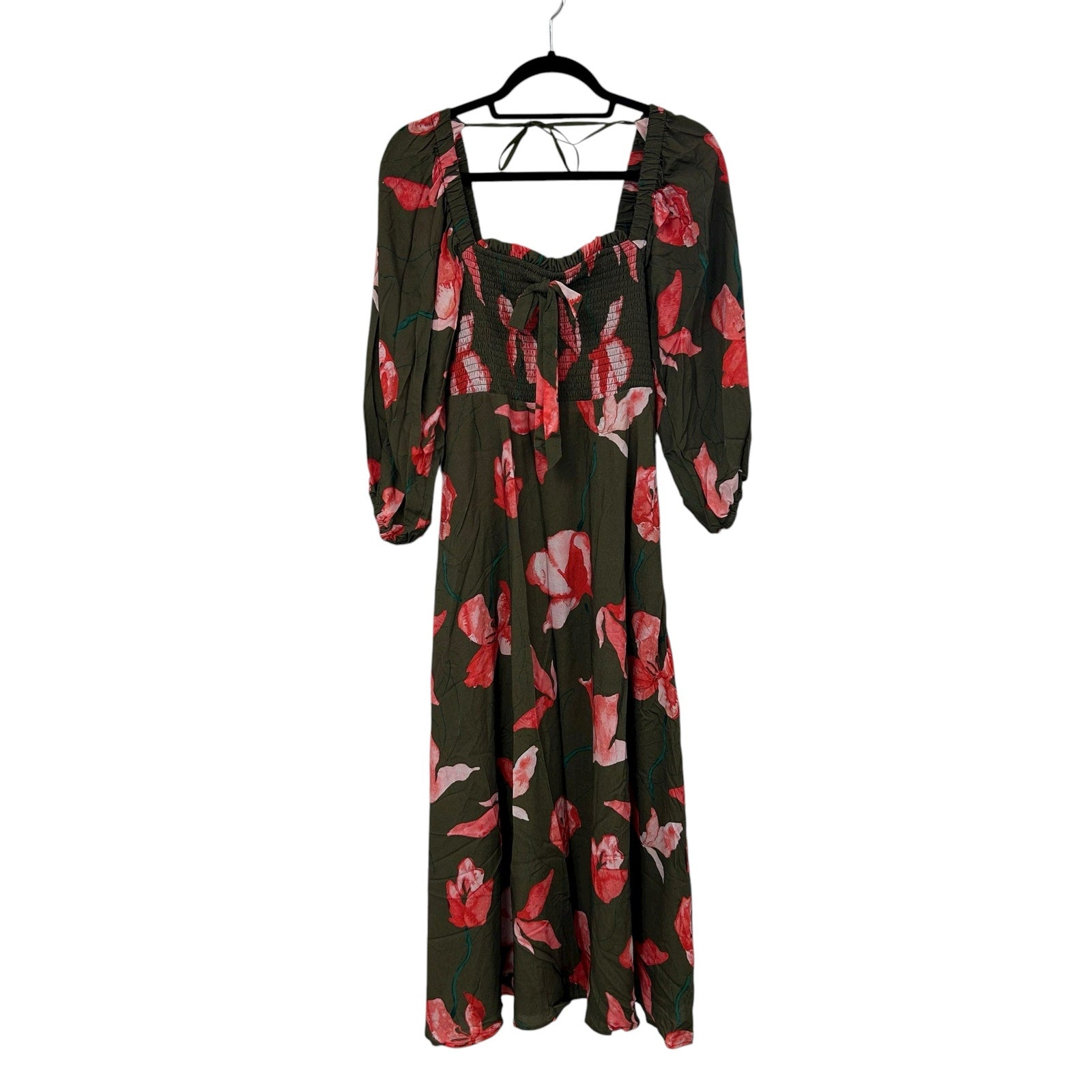 Hutch Anthropologie Green Floral Print Sweetheart Bow Front Dress Womens Small