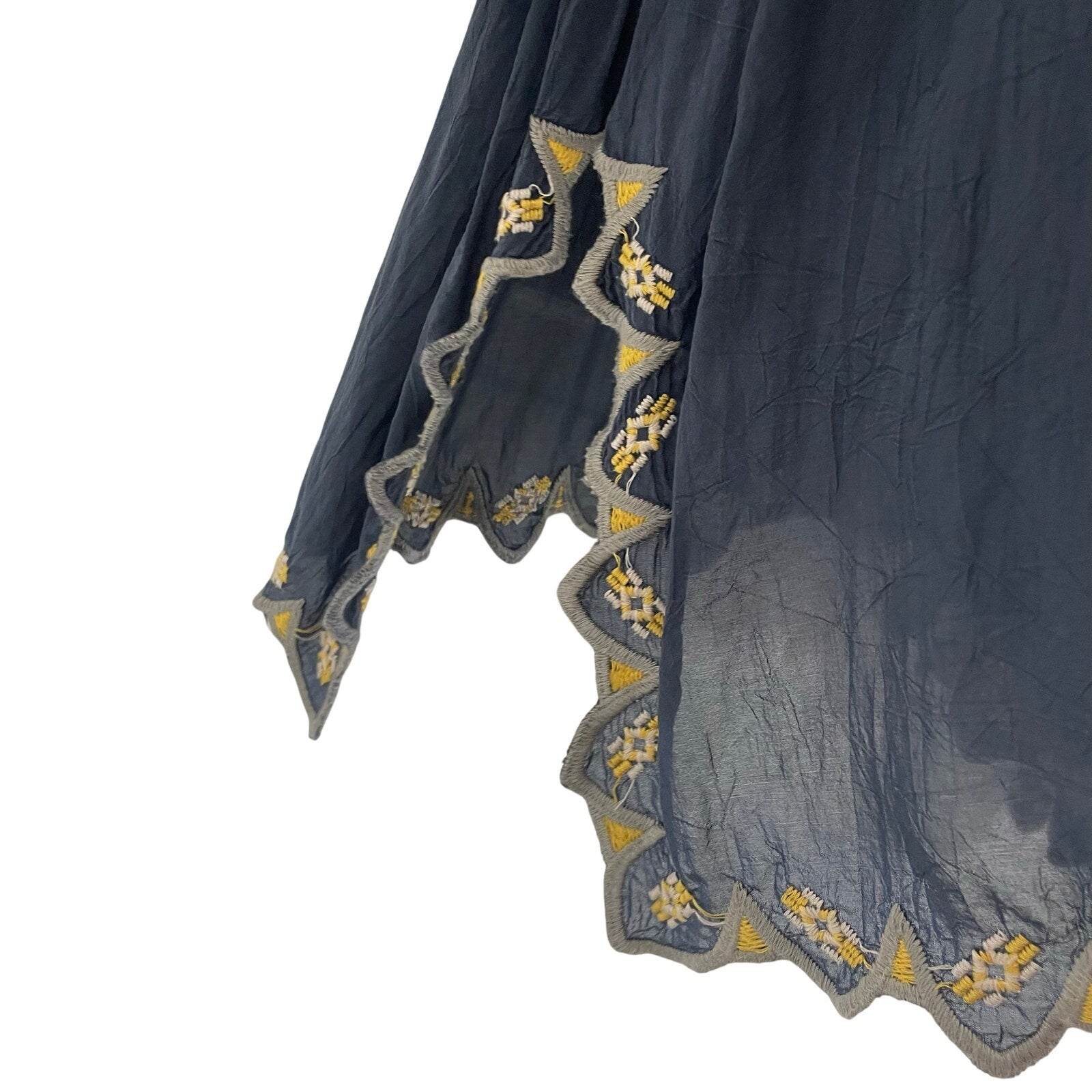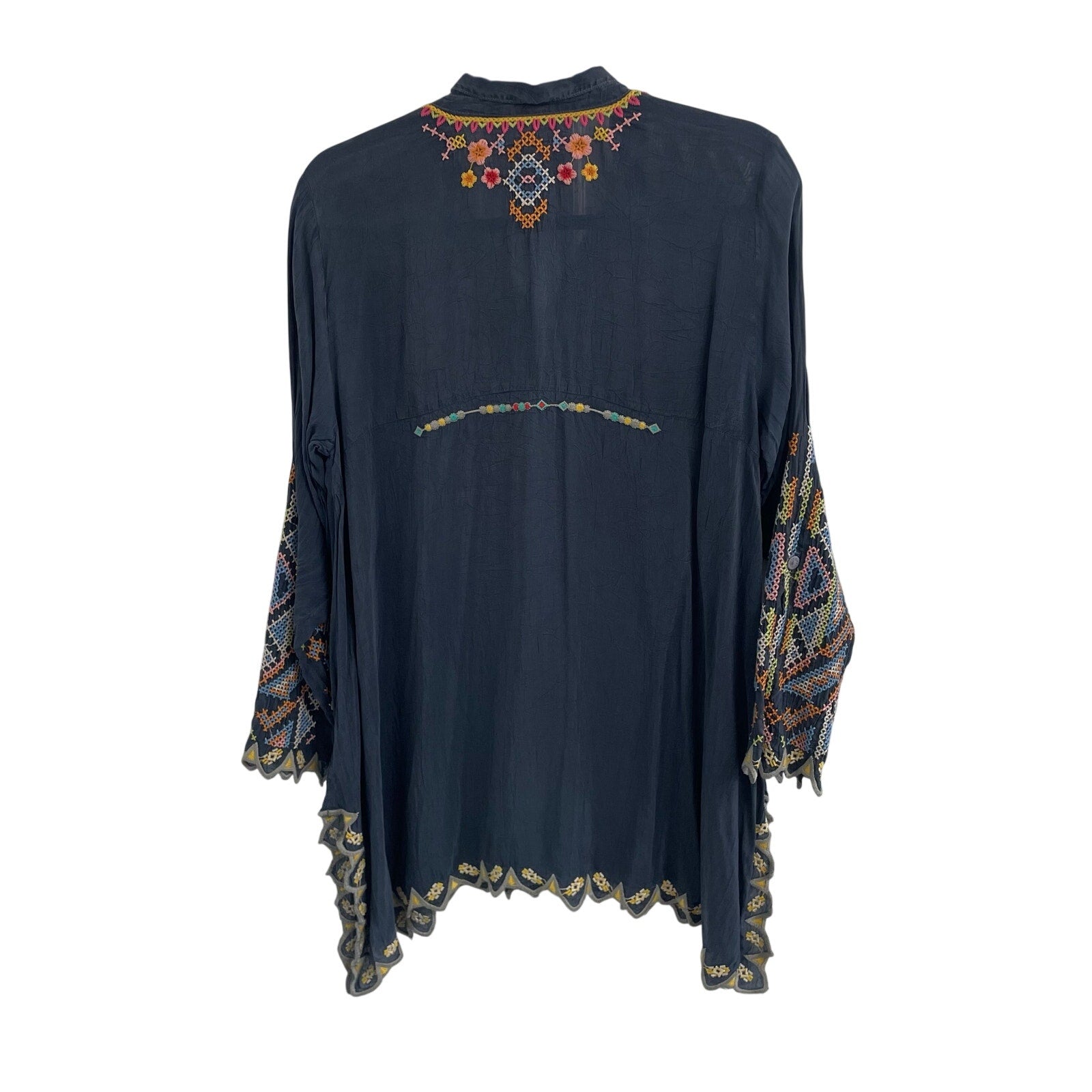 Johnny Was Festival Georgette Tunic Navy Multicolor Embroidery Womens Medium