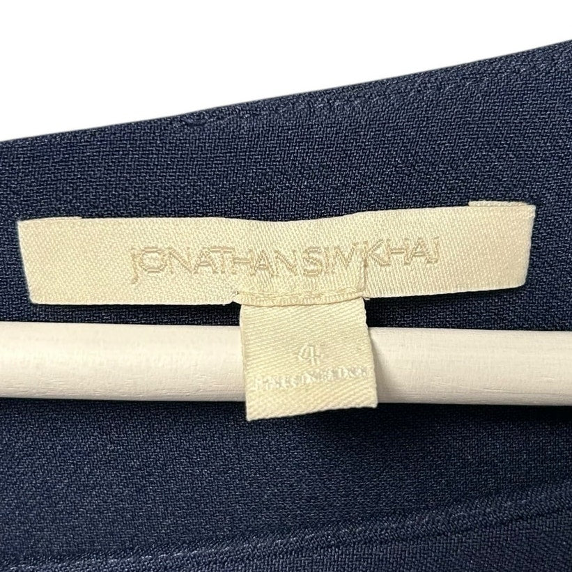 Jonathan Simkhai Navy Crepe Ruffle Boatneck Bell Sleeve Mini Dress Womens Size 4