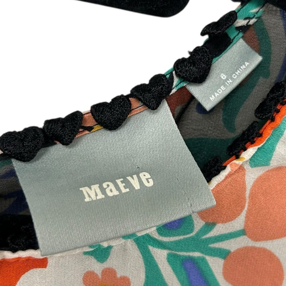 Maeve Black Multi Folkart Floral Print Short Sleeve Silk Kimono Top Womens 6