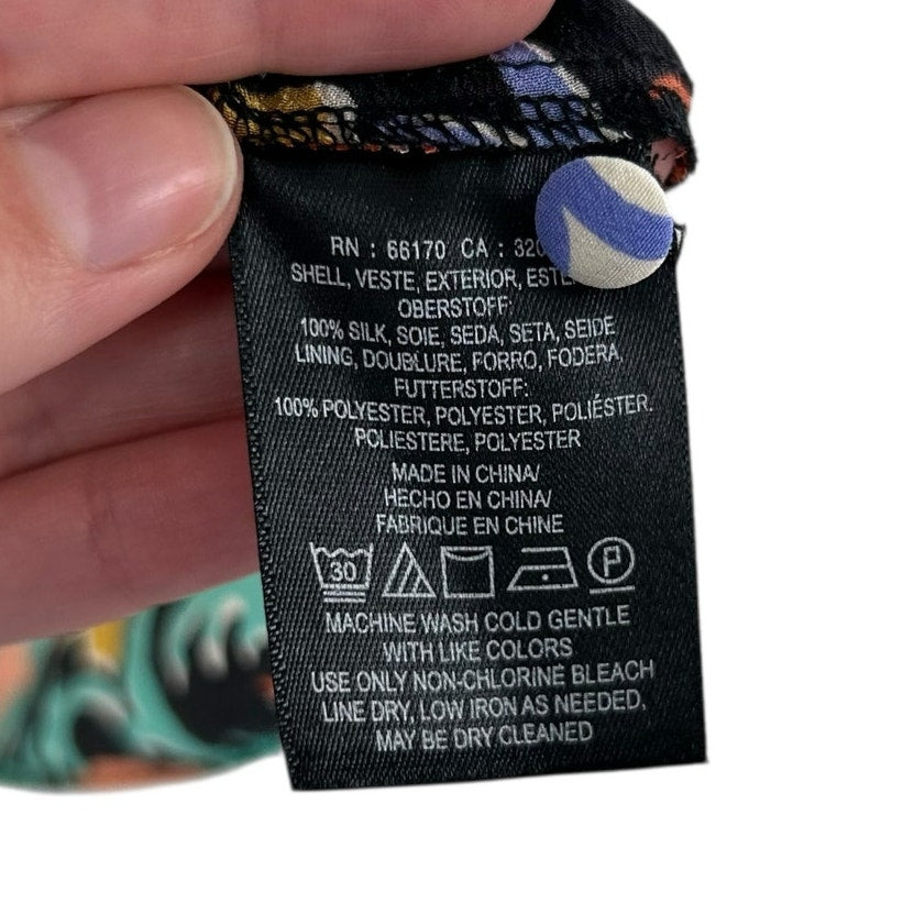 • Features: Black, Multicolor, Folkart Floral Print, Short Sleeve, 100% Silk, Kimono Style Top
