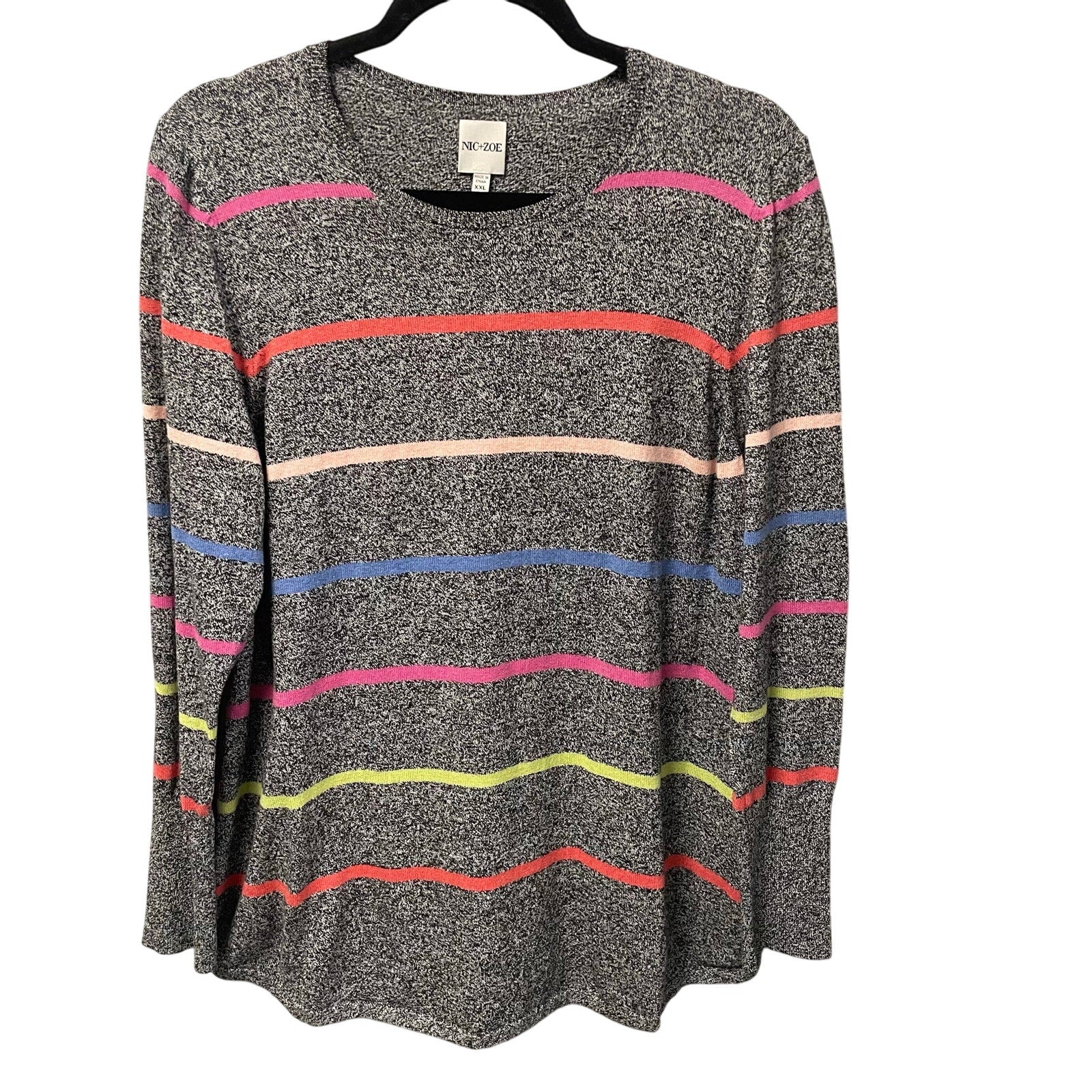 Nic + Zoe Multicolor Striped Long Sleeve Knit Crewneck Top Womens XXL