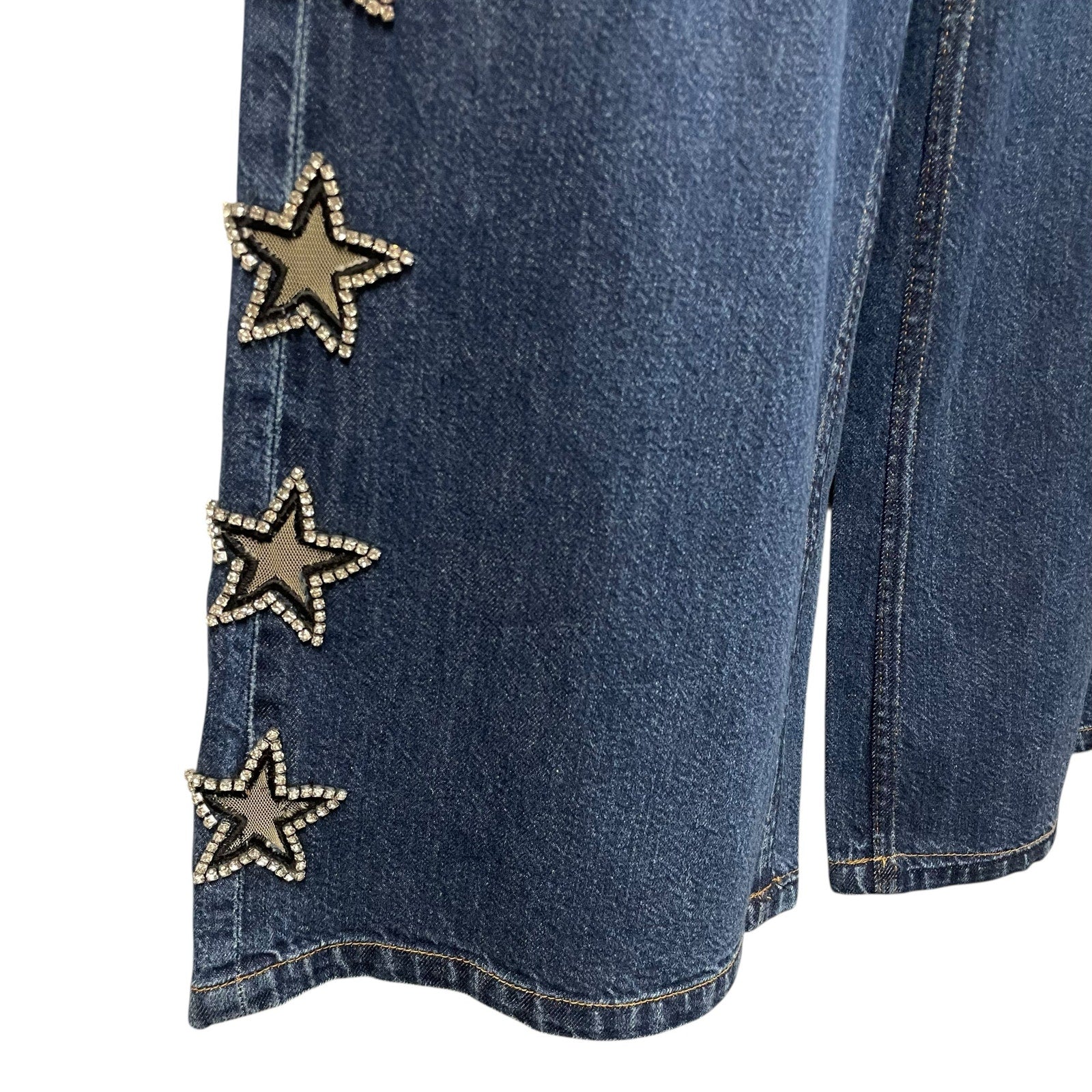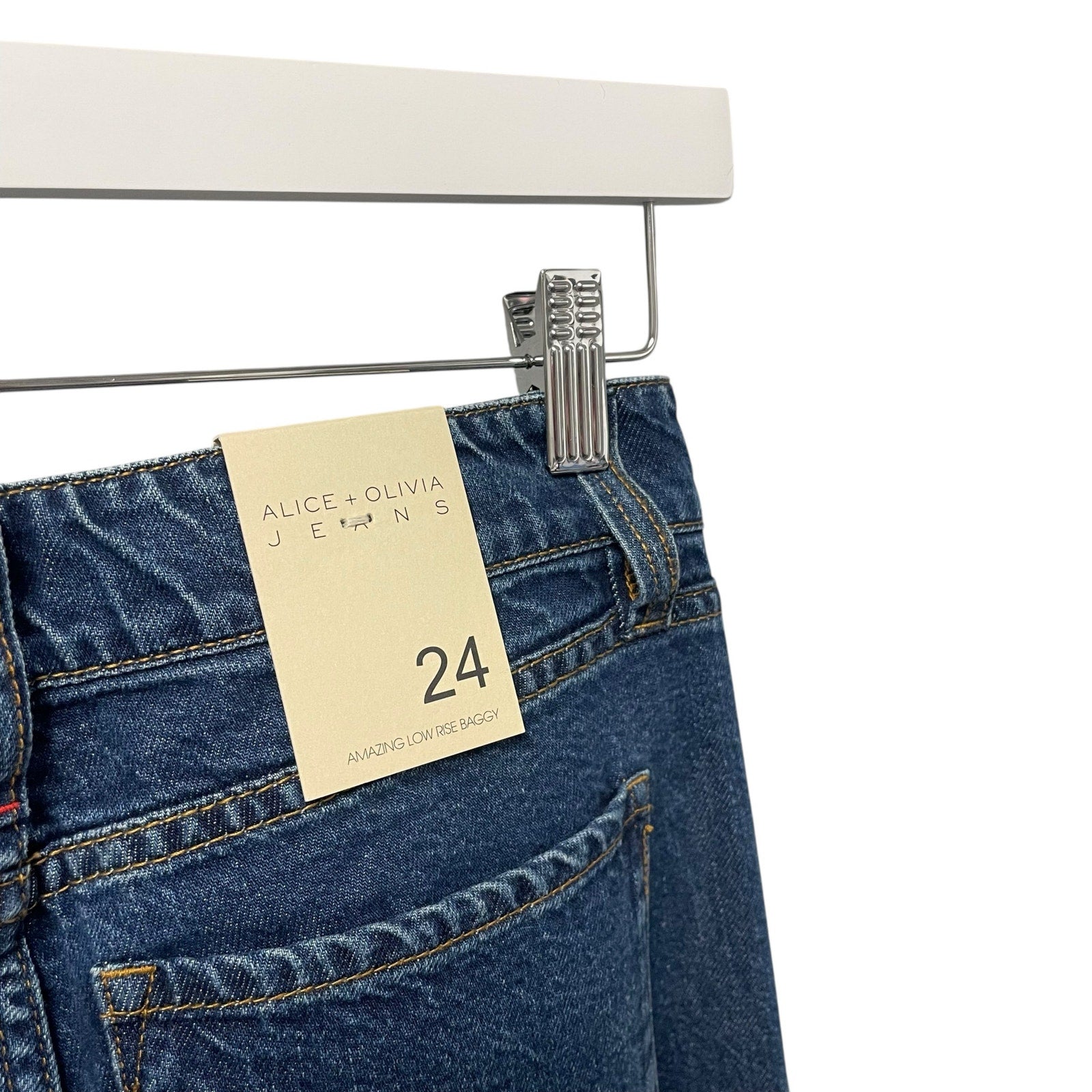 NWT Alice + Olivia Amazing Low Rise Baggy Jean Dark Rinse Star Embellished 24