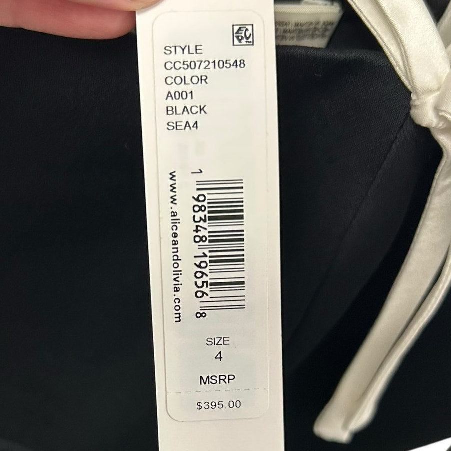 NWT Alice + Olivia Black White Morgan Babydoll Bow Detail Mini Dress Womens 4