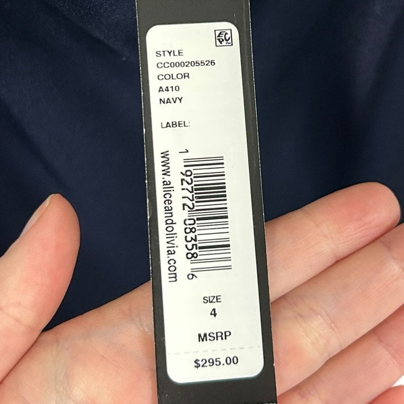 NWT Alice + Olivia Classics Navy Harmony Sleeveless Mini Slip Dress Womens 4