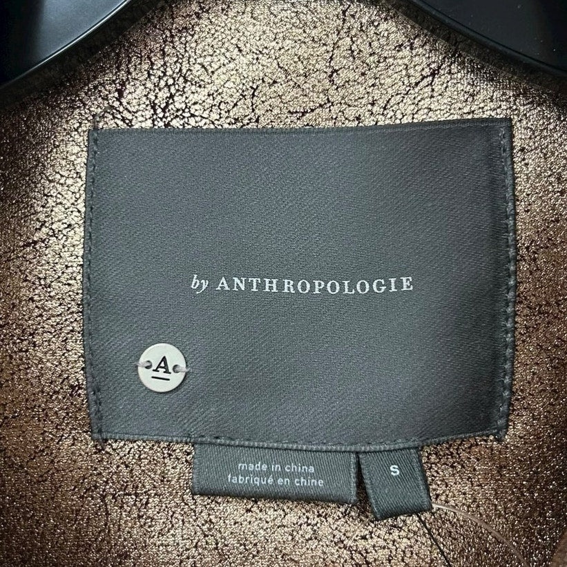 NWT Anthropologie Brisa Metallic Cropped Faux Leather Moto Jacket Womens Small
