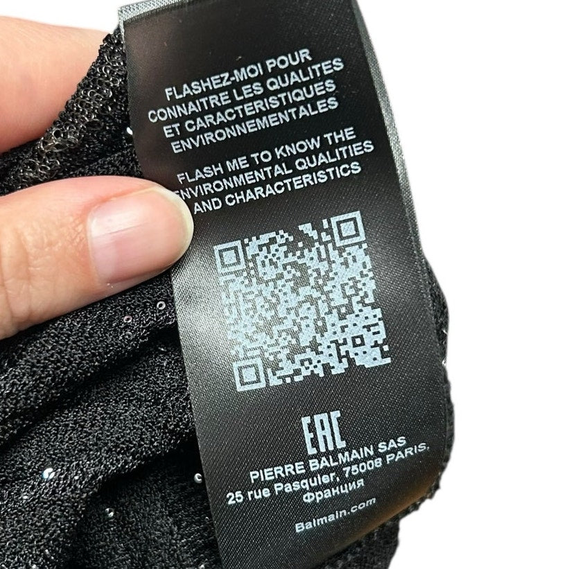 NWT Balmain Paris Black Asymmetric Sequined Mini Bodycon Dress Womens 36 / US 4