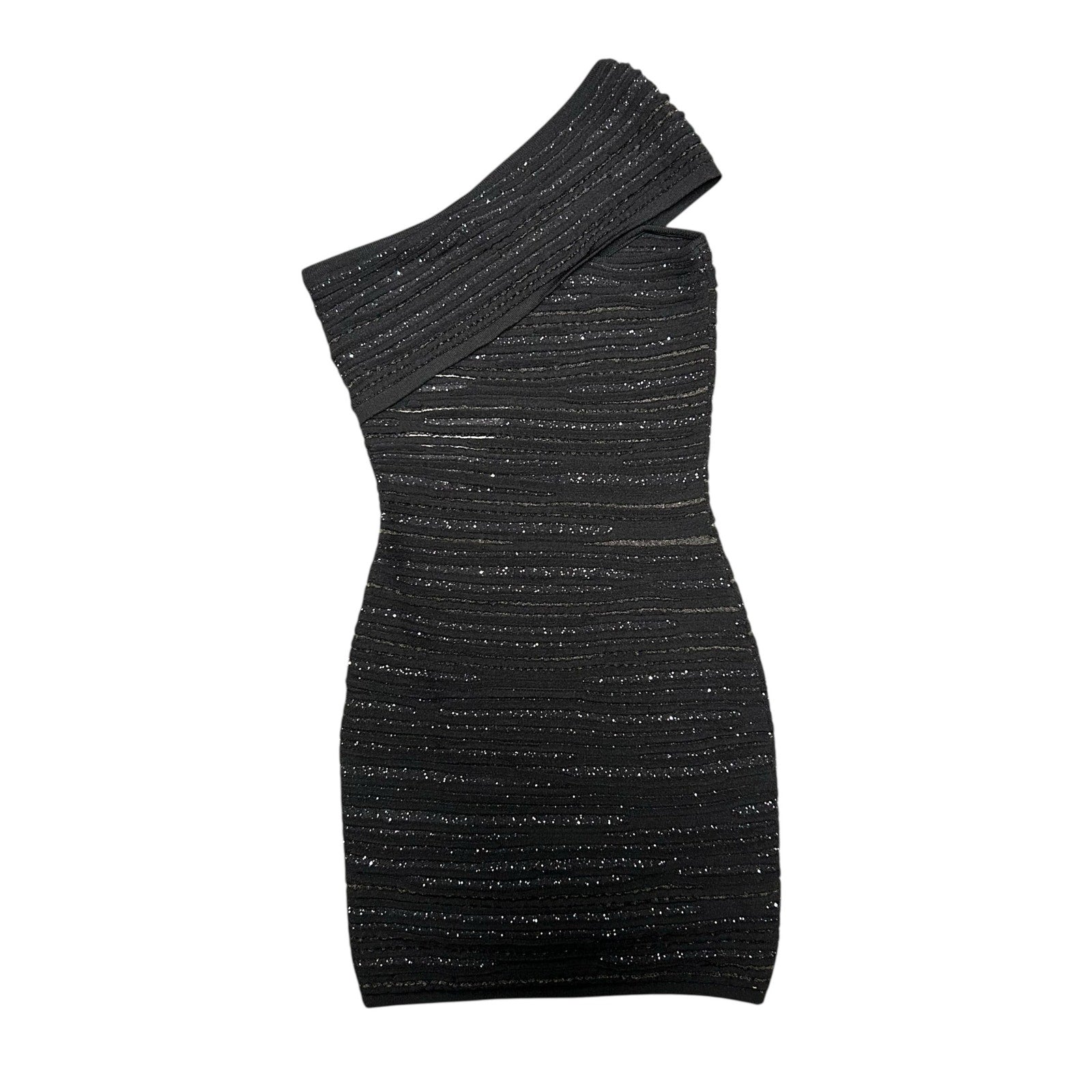 • Features: Viscose Blend, Black, Asymmetric/One Shoulder, Sequined, Mini Length, Bodycon