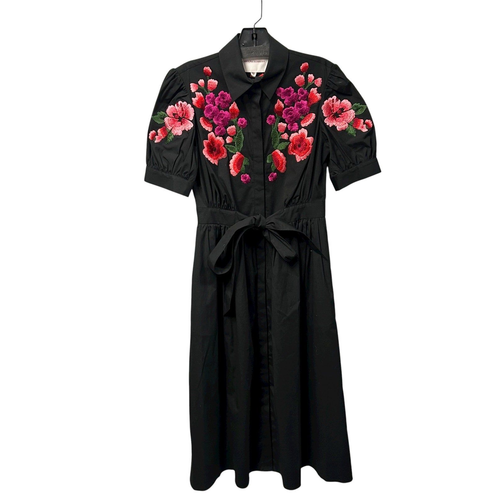 NWT Carolina Herrera Black Multi Floral Embroidered Shirt Dress w/ Tie Womens 2