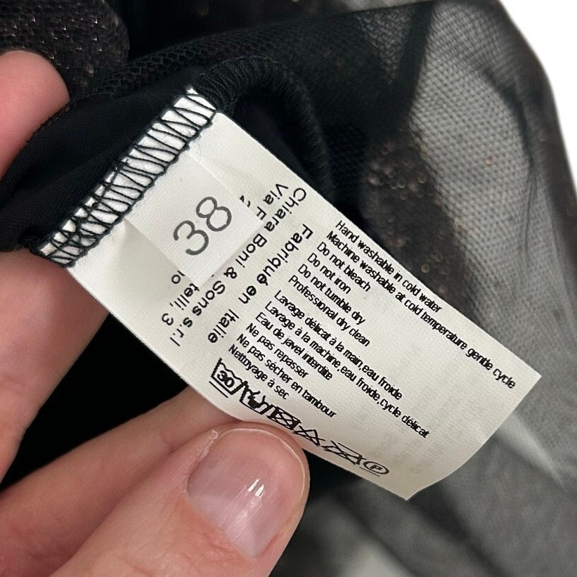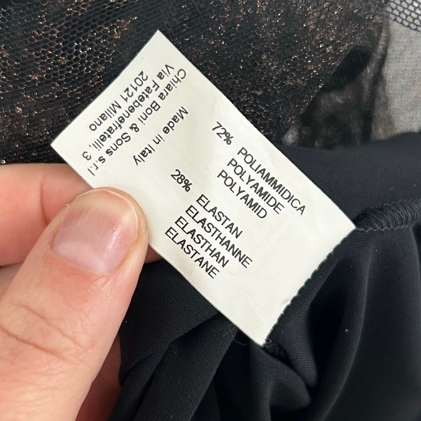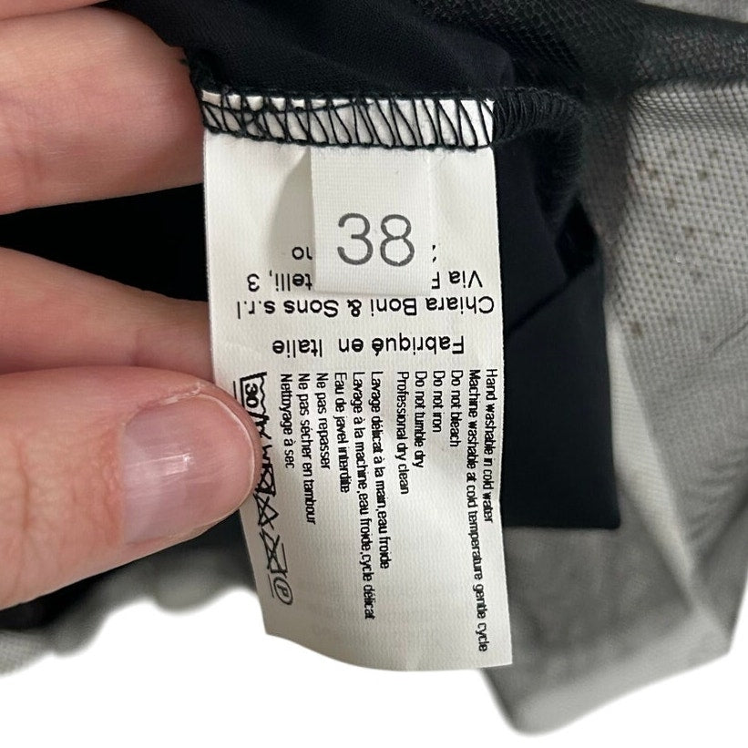 NWT Chiari Boni Black Deidre Illusion Print Bell Sleeve Top Womens 38 / US 2