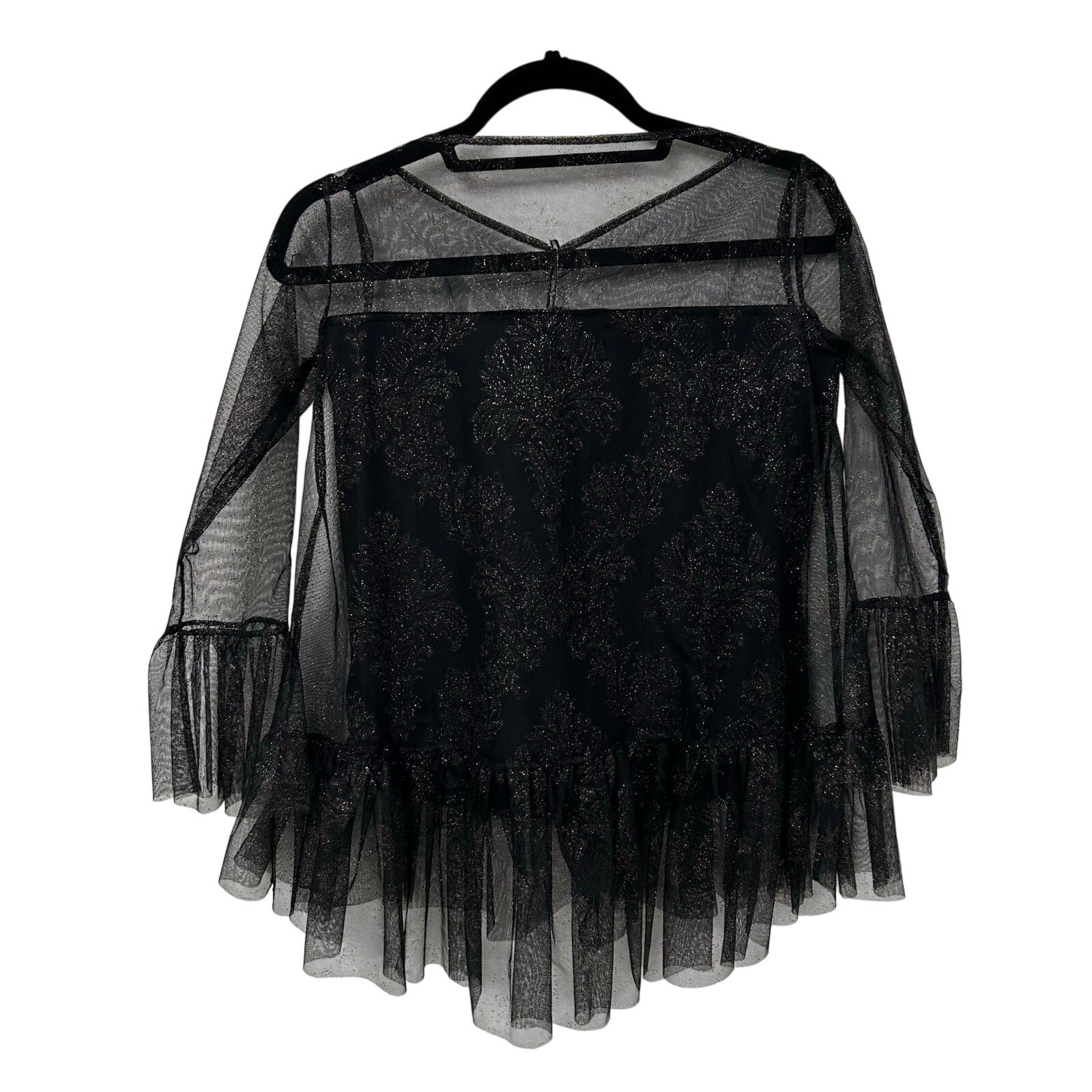 • Features: Polyamide Blend, Black, Deidre Style, Illusion Print, Long Bell Sleeves