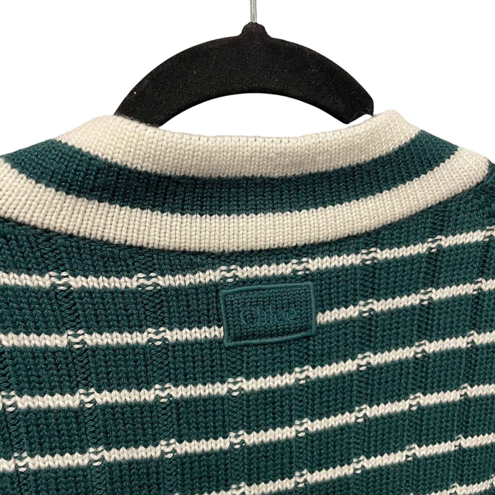 NWT Chloe Striped Ribbed Knit V Neck Jumper Sweater Dark Green Womens Small