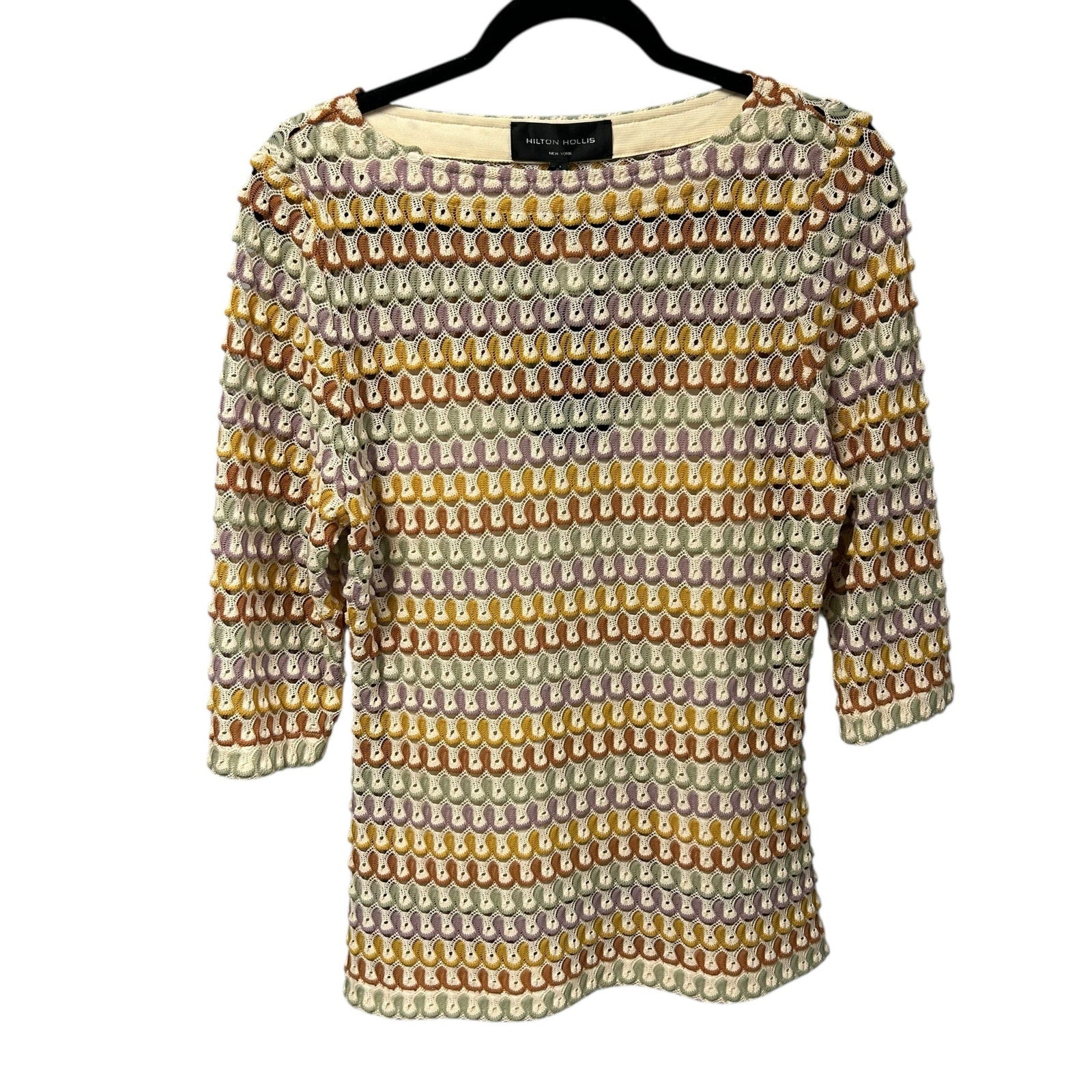 • Features: 100% Polyester, Lilac Combo, Multicolor, Textured, Crochet Knit, 3/4 Sleeves