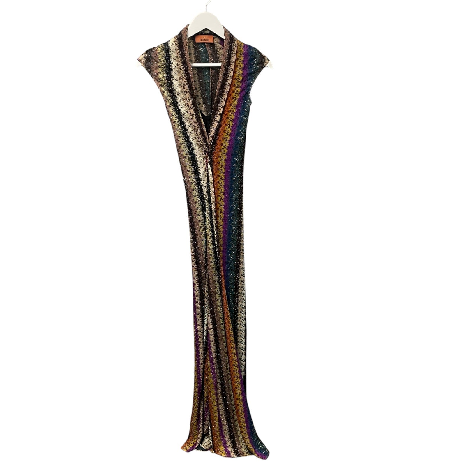 NWT Missoni Stripe Twist Front Raschel Mesh Maxi Dress Multicolor IT 36 / US 0