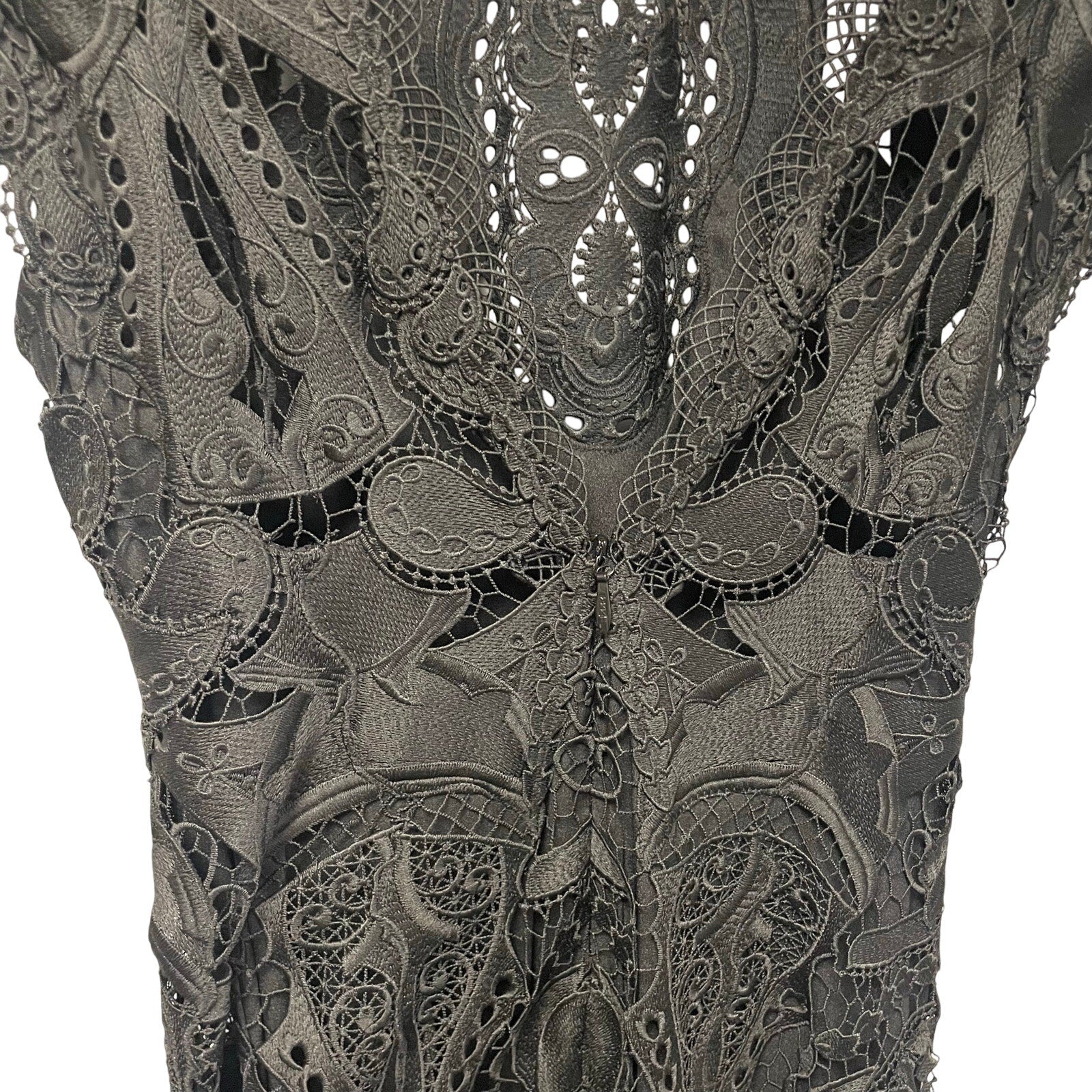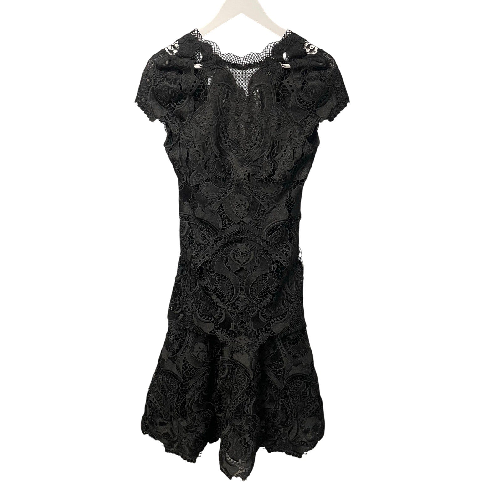 • Features: Zip up back with hook and eye closure, Midi length, Partially lined, Tiered skirt, Intricate lace exterior, Cap sleeves, High neck, V cut back, Simkhai Signature Laura Lace Dress