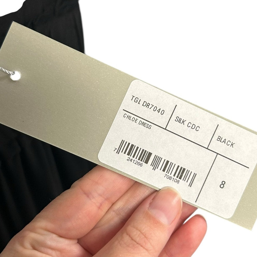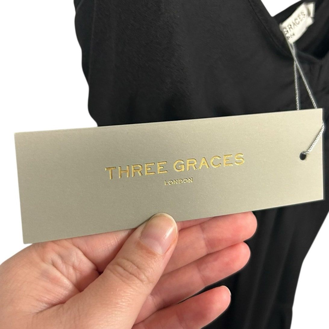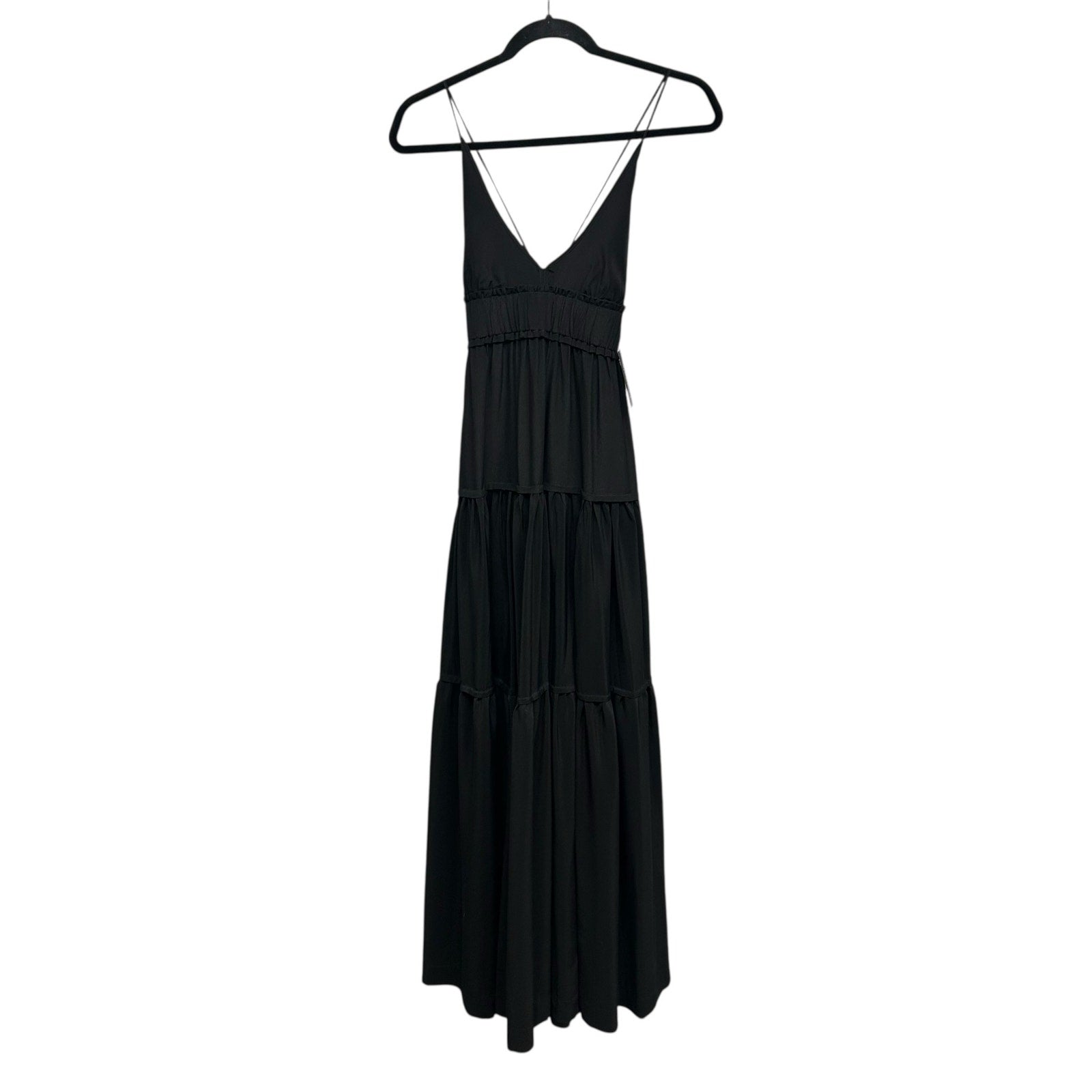 NWT Three Graces London Black 100% Silk Chloe Tiered Maxi Dress Womens 8 / US 4