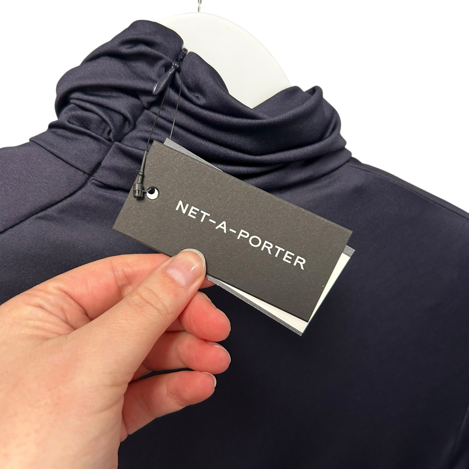 NWT Victoria Beckham Navy Gathered Draped Turtleneck Midi Dress Womens US 0