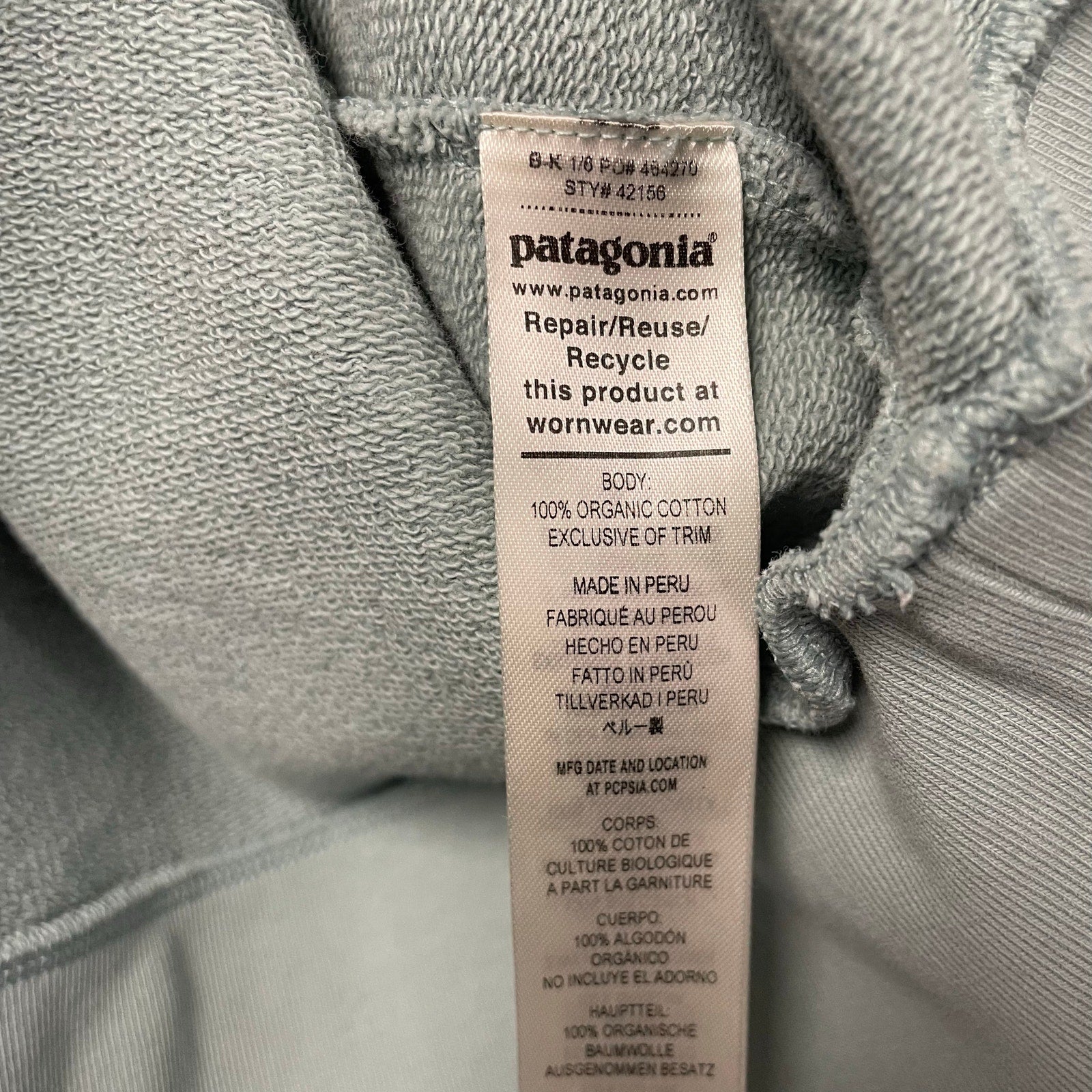• Features: Pullover styling, Hooded, Patagonia logo label sewn on front, Thermal Blue / Light blue, Regenerative Organic Cotton fabric