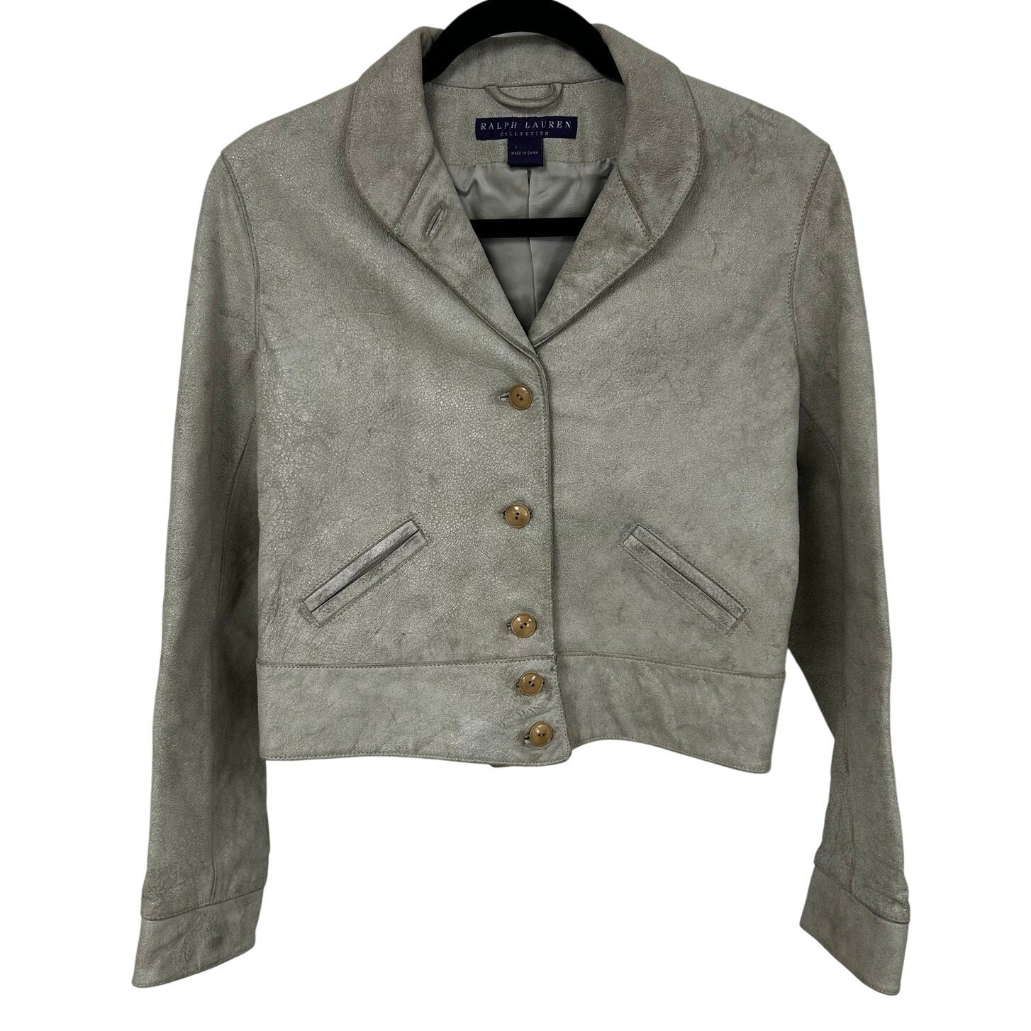 Ralph Lauren Collection Purple Label Cream Distressed Leather Jacket Womens 10