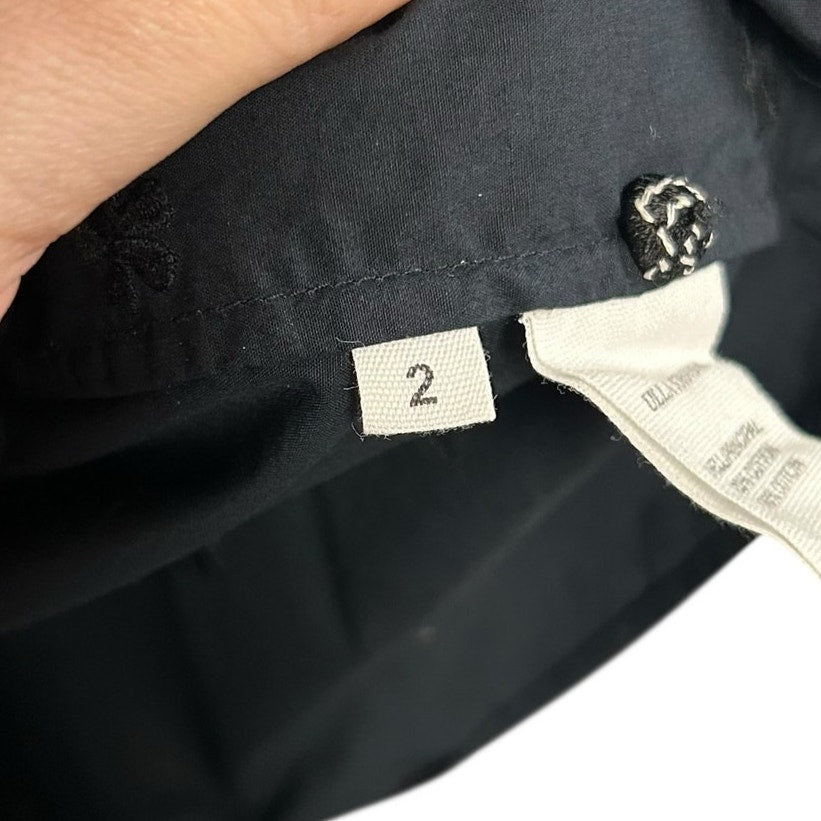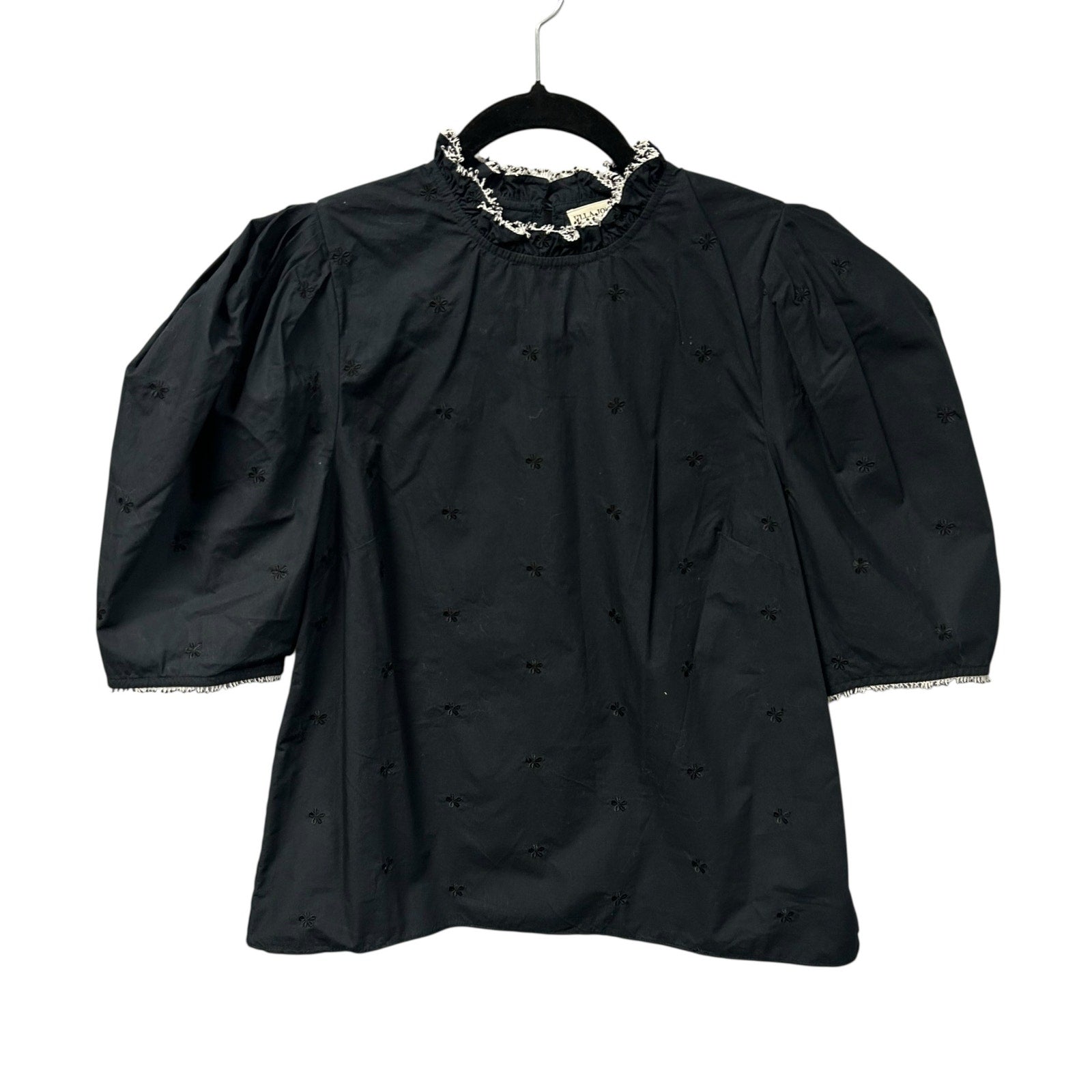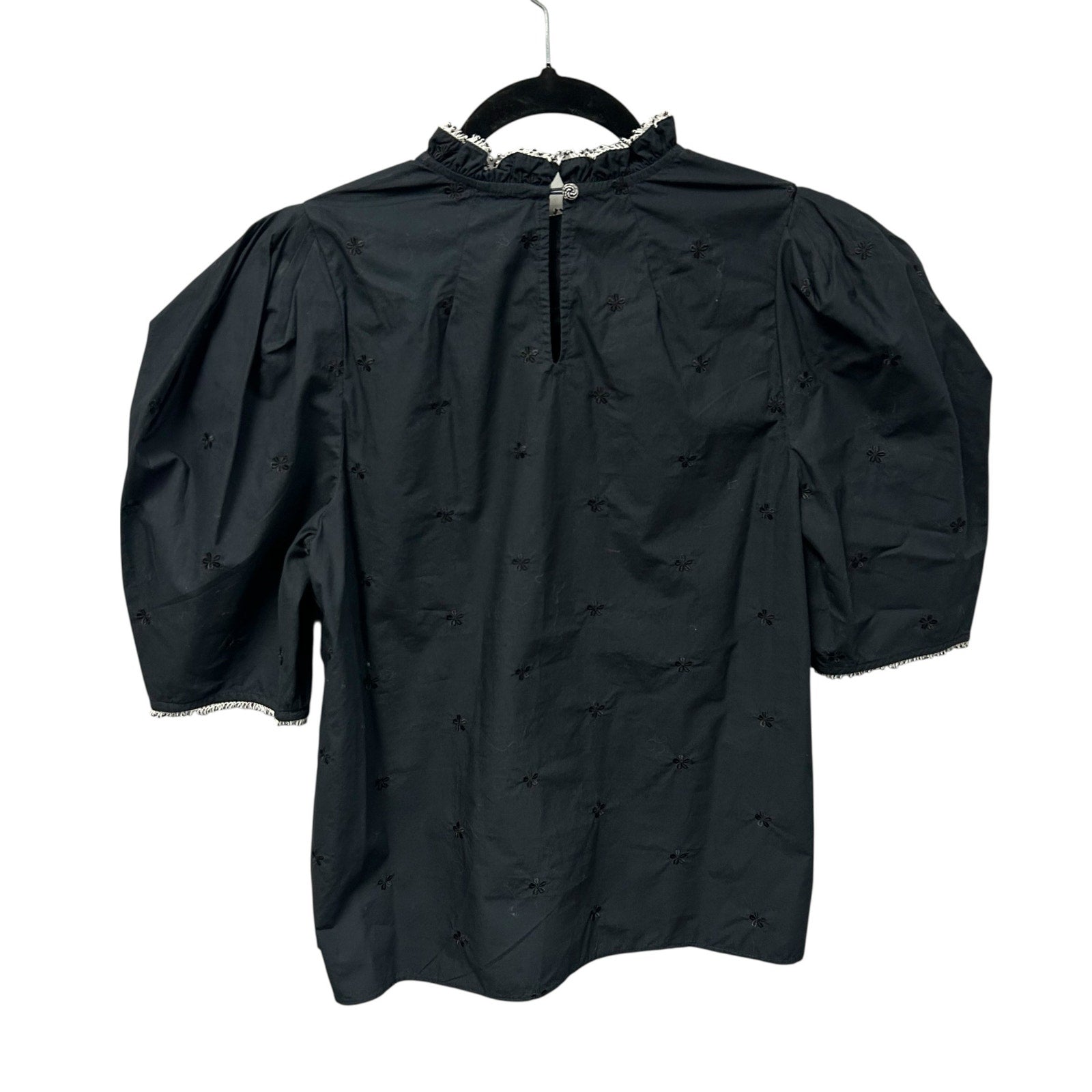 Ulla Johnson Black Beaded Trim Cotton Short Puff Sleeve Boden Top Womens Size 2