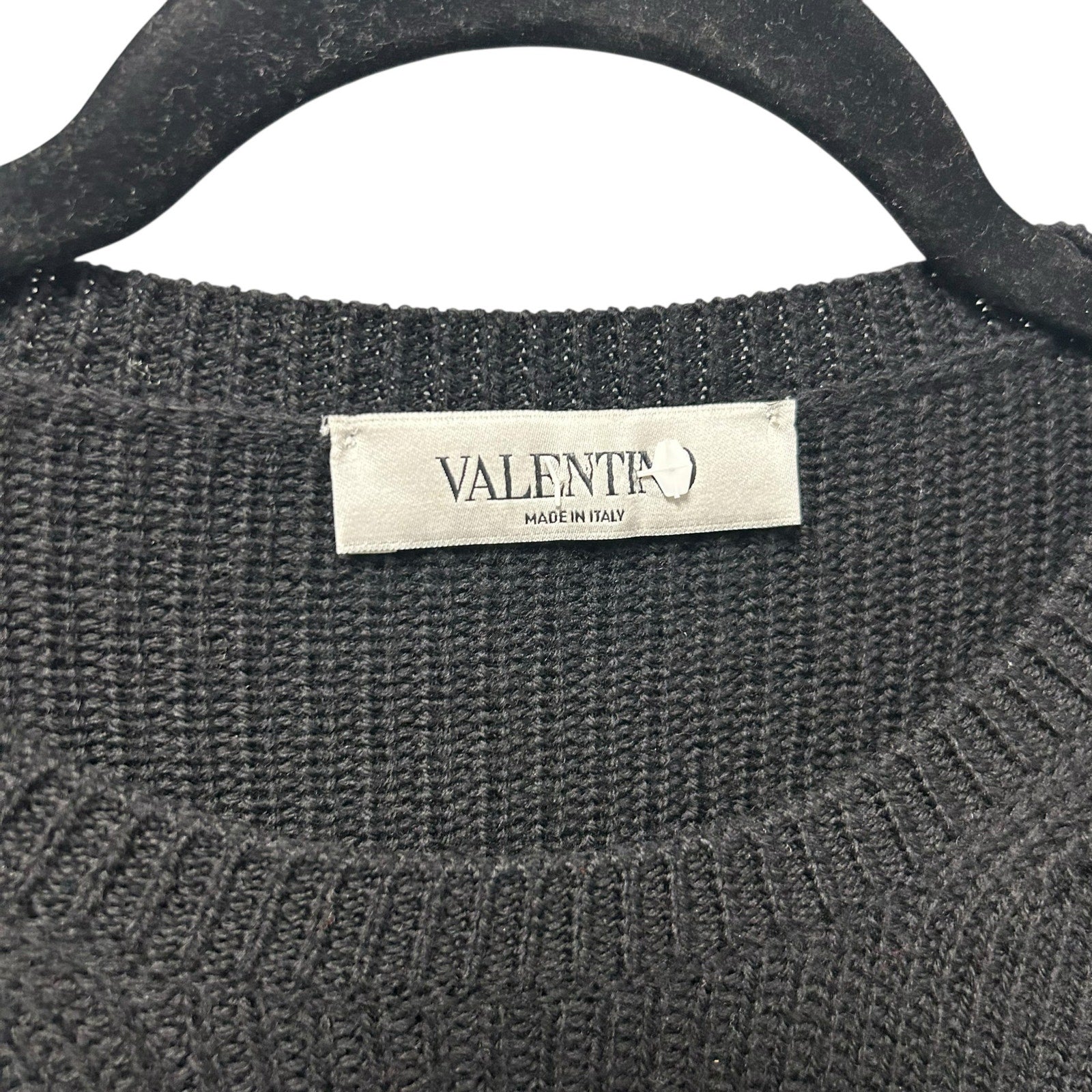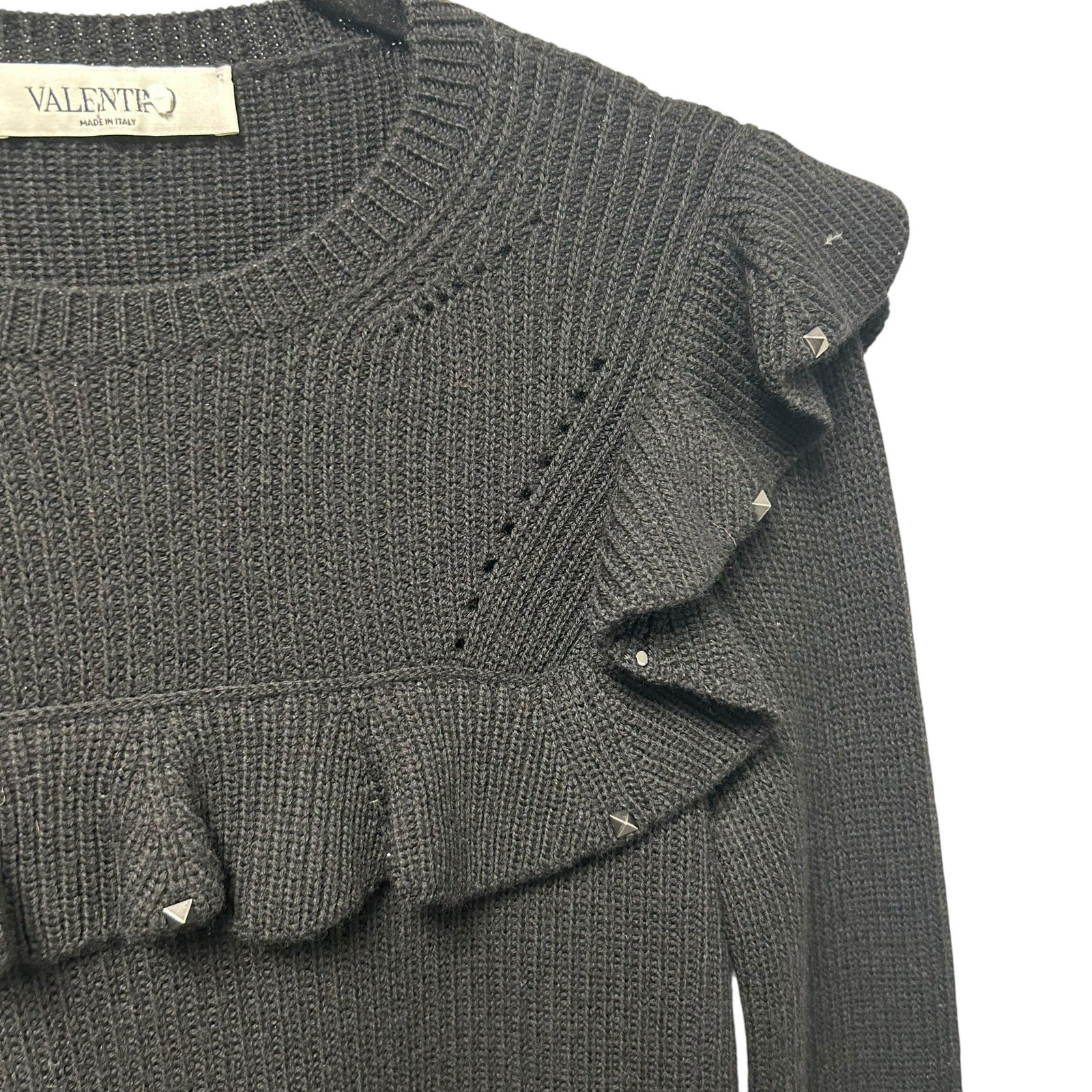 Valentino Black Rockstud Embellished Ruffle Pullover Wool Sweater Womens Medium