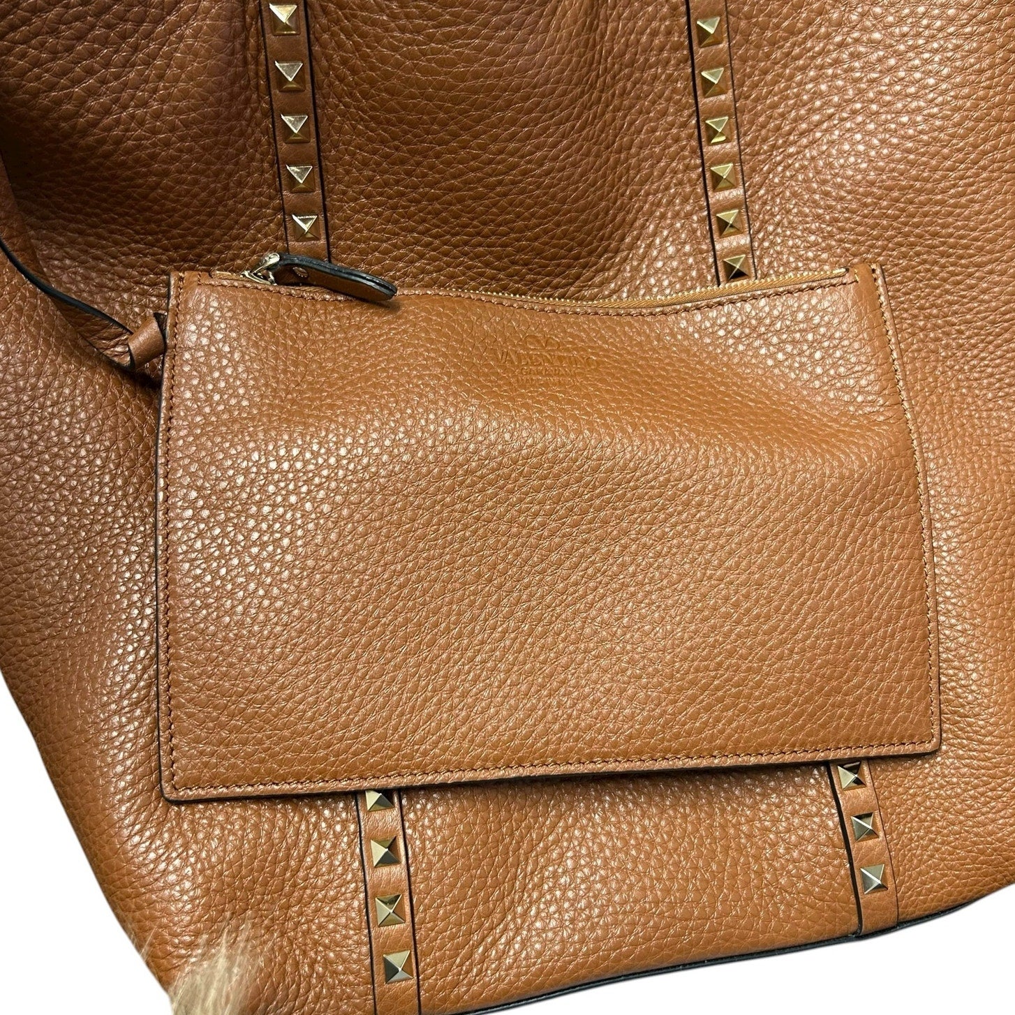 • Features: Valentino Garavani leather north-south tote bag with signature Rockstuds, Shoulder straps, Zip top closure, Interior, leashed zip pouch bag