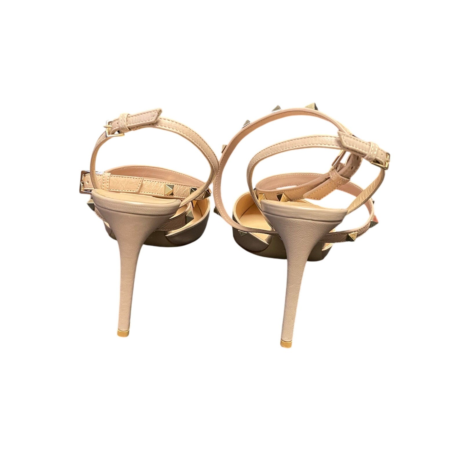 • Features: Valentino Garavani Pumps, Wrap around ankle strap with adjustable buckle closure, Rockstud accents on straps, Poudre / nude color, Calf Leather, Pointed toe, Skinny heel, Comes with card of authenticity