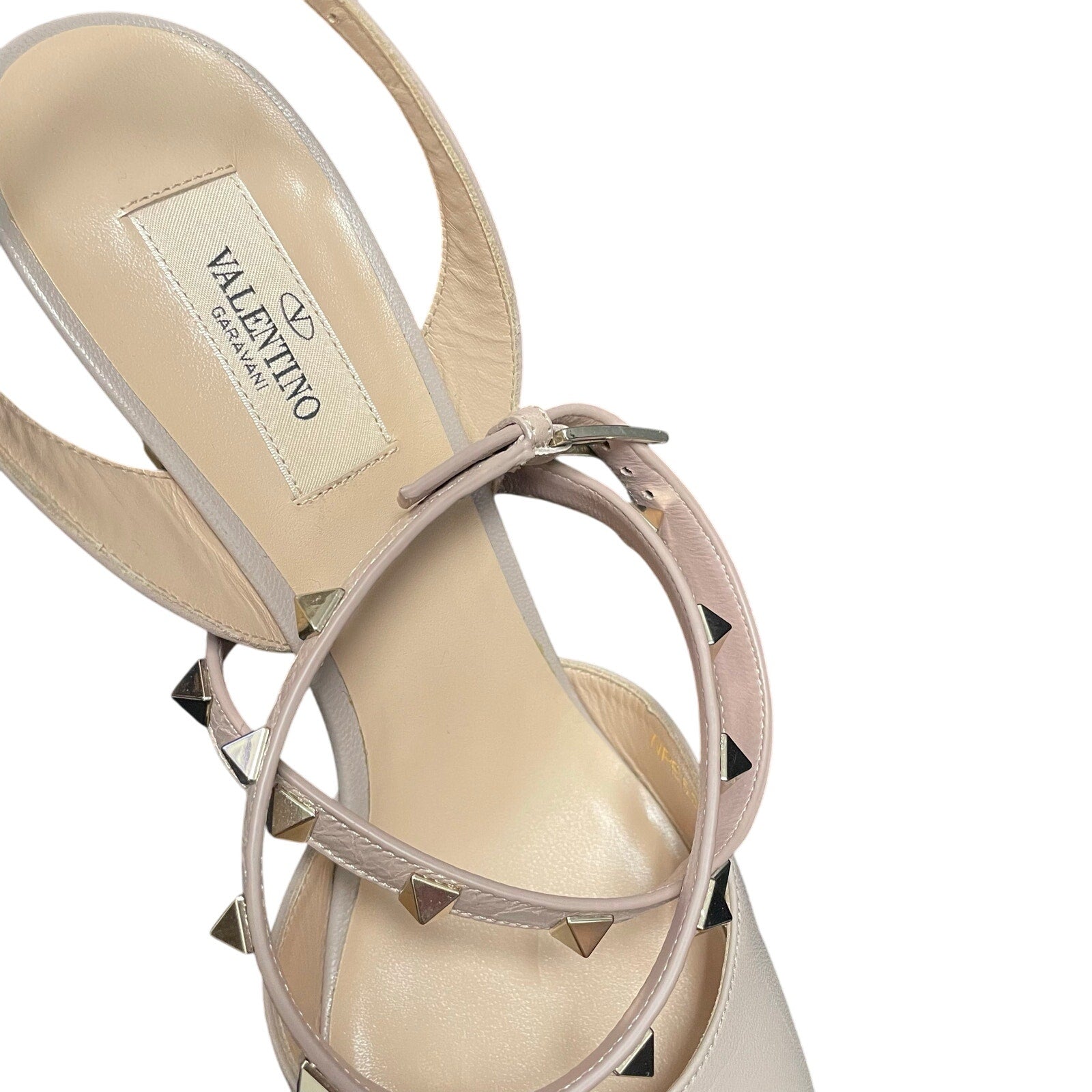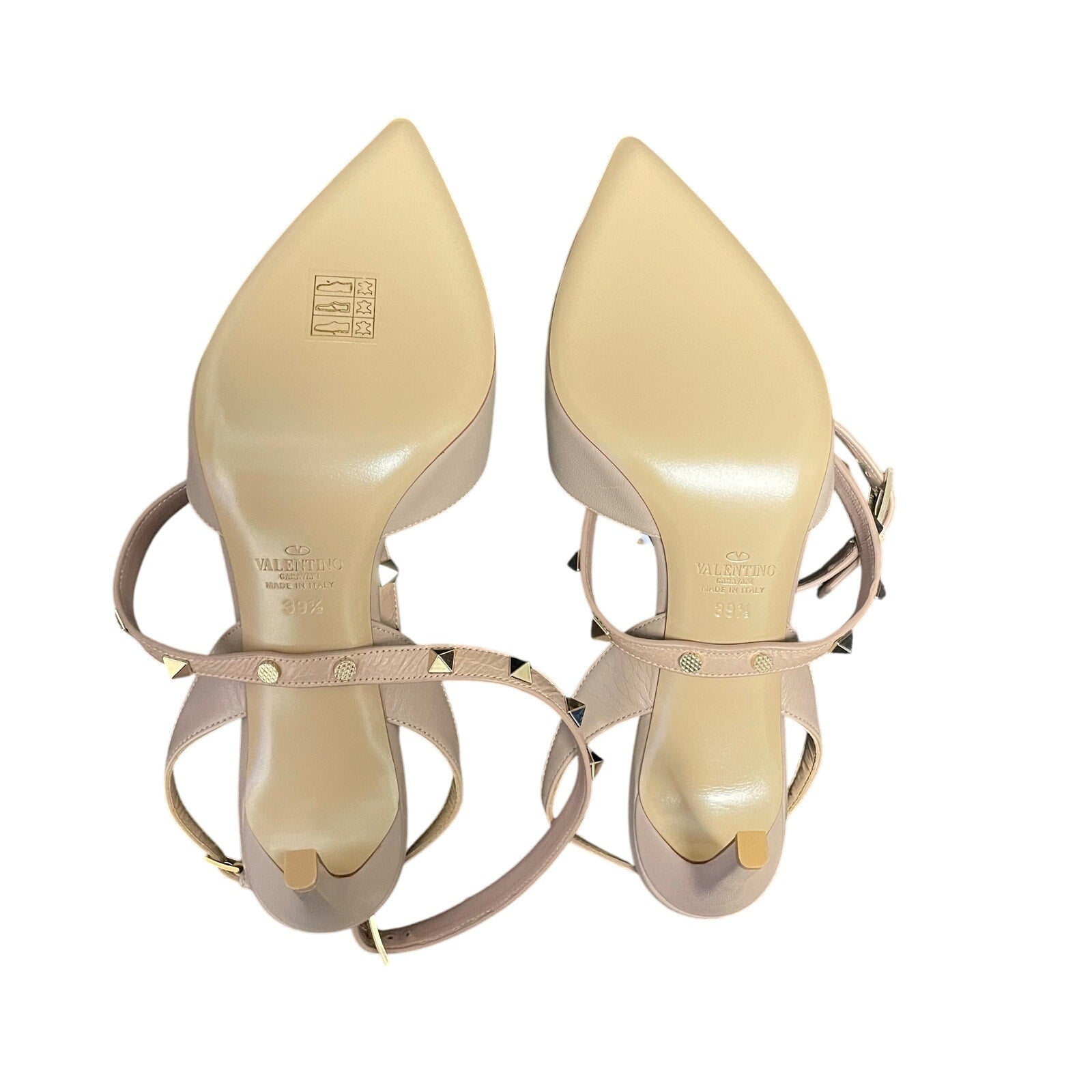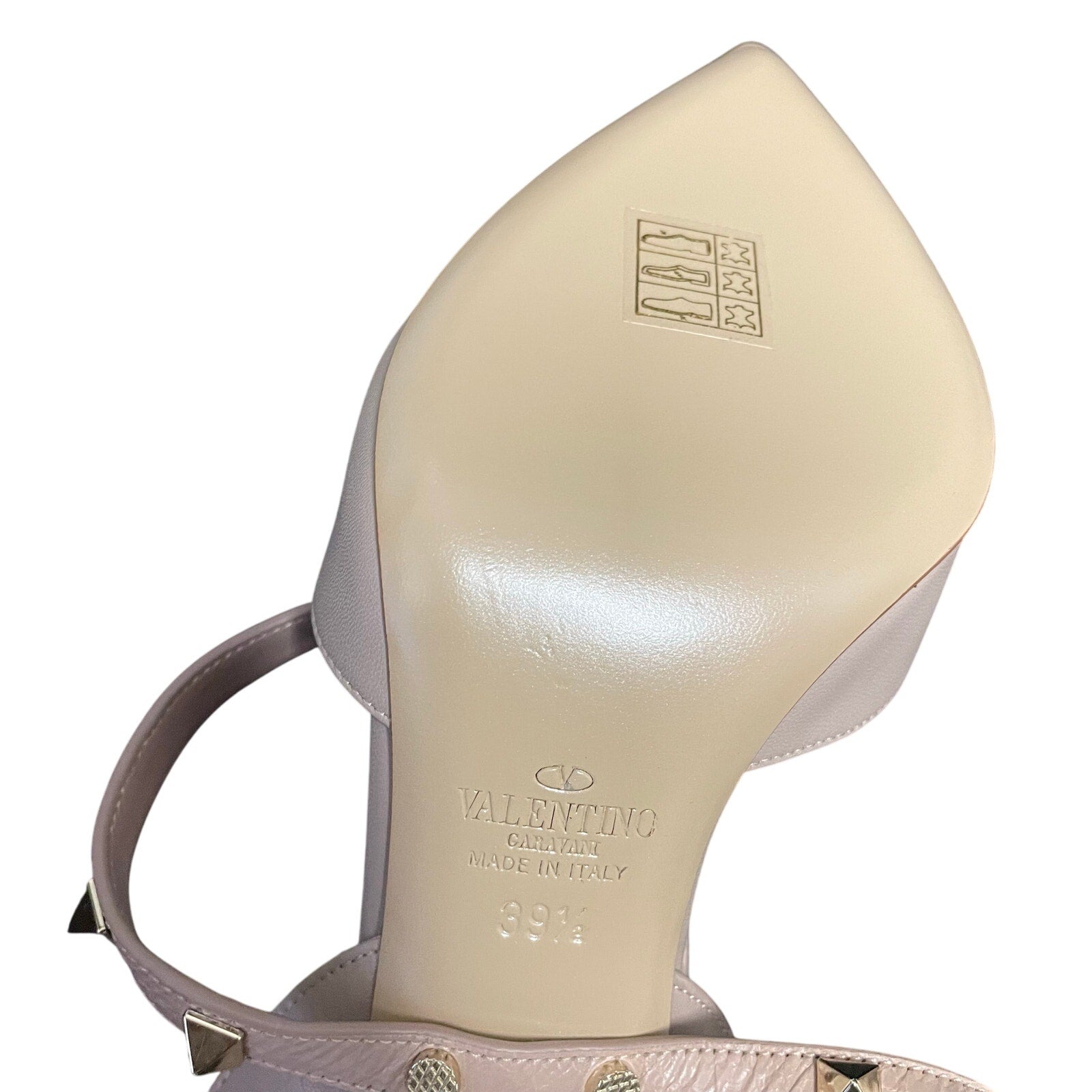 Valentino Garavani Rockstud Ankle Strap Calf Leather Pumps Poudre 39.5 / US 9.5