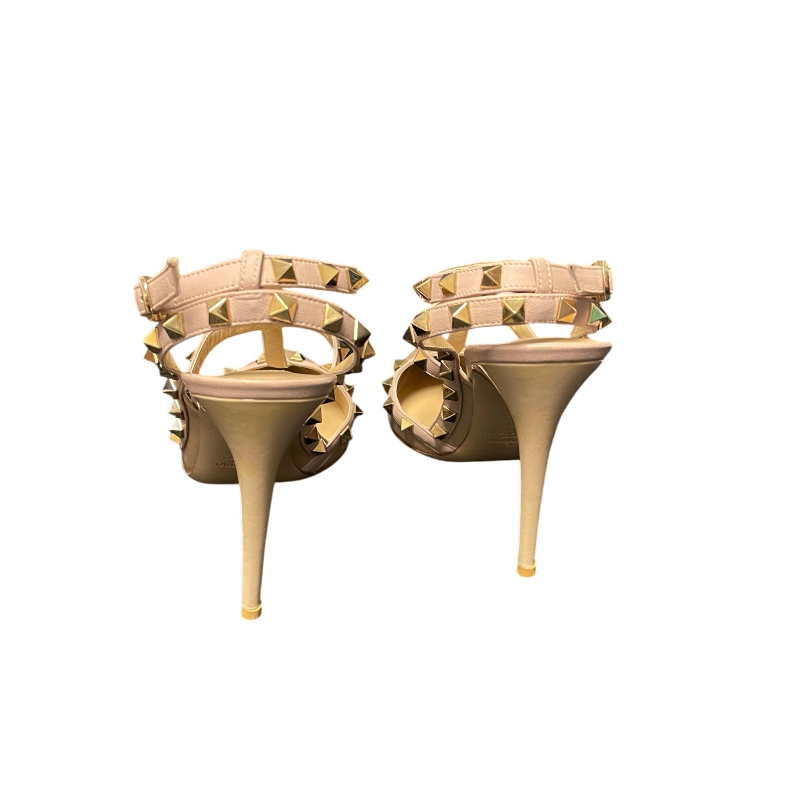 Valentino Garavani Rockstud T Strap Pointed Toe Blush Leather Heels 40 / US 10