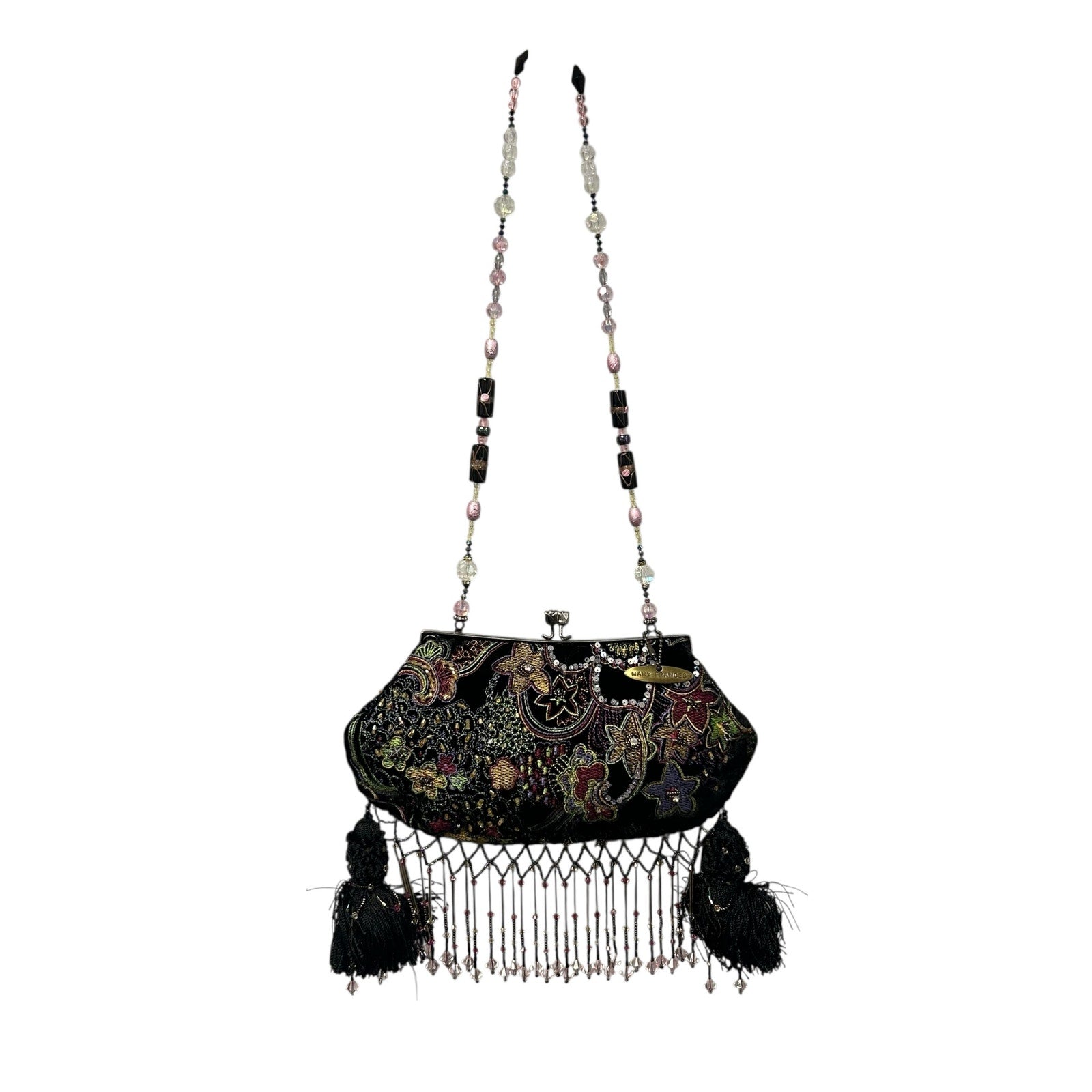 Vintage Mary Frances Sequin Rhinestone Embellished Beaded Fringe Evening Bag