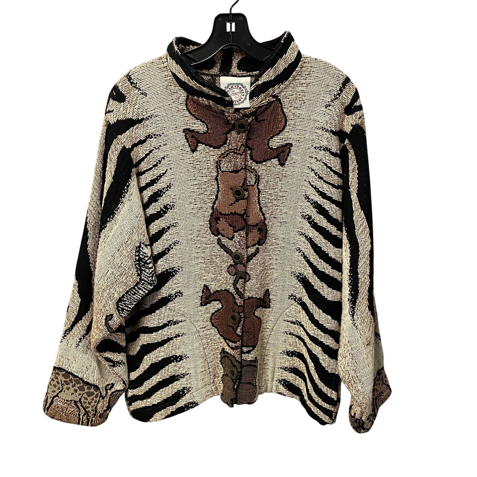 Vintage Sugar Street Weavers Safari Animal Print Button Up Sweater Jacket Medium